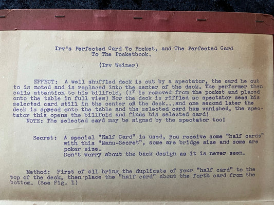 Irv's Perfected Card to Pocket, and the Perfected Card to the Pocket - Irv Weiner