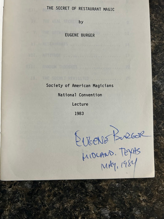 The Secret of Restaurant Magic - Eugene Burger - SIGNED