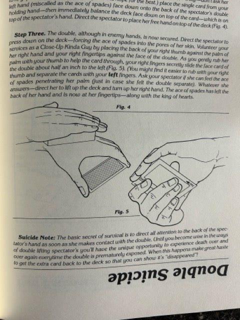 “The unique nature of close-up creates an instant bond of intimacy between the performer and his audience. It's up to the individual whether this bond of intimacy is used for the forces of darkness and evil: mentally beating up spectators with “Ha, I fooled you" type presentations; or whether this special bond of intimacy is recruited for the forces of goodness and wonderfullness: a magical tool to secretly stuff a little sunshine into the enlightened corners of your spectators soul - provoking verbal warmies, mental feelies, and generally making people happy and glad for the chance to bask in the shadow of the genuine close up kind of guy."