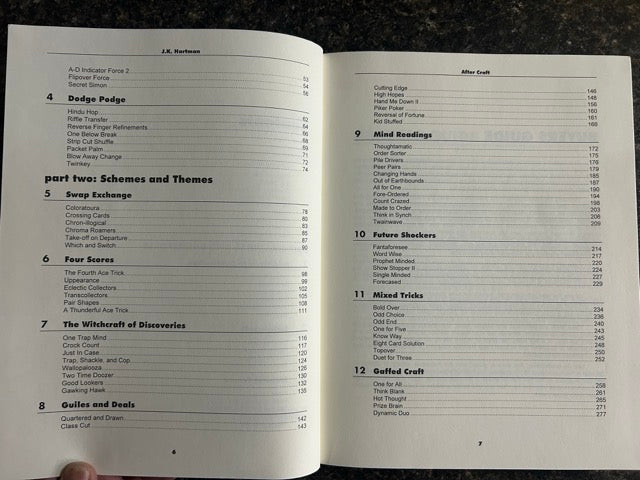 Hartman's Card Craft has become a modern day classic of magical literature. After Craft is an excellent sequel and equally fine publication. All cards, all fascinating, and all expertly described and illustrated. A 283 page hardbound book of 85 separately tiled tricks and sleights all illustrated in detail. Sixty-four of these have never before appeared in print. The book is divided into two parts. Part one deals with sleights and moves while part two covers tricks and routines with cards. A huge collection of card magic for the intermediate card worker. Hartman's Card Craft has become a modern day classic of magical literature. After Craft is an excellent sequel and equally fine publication. All cards, all fascinating, and all expertly described and illustrated.