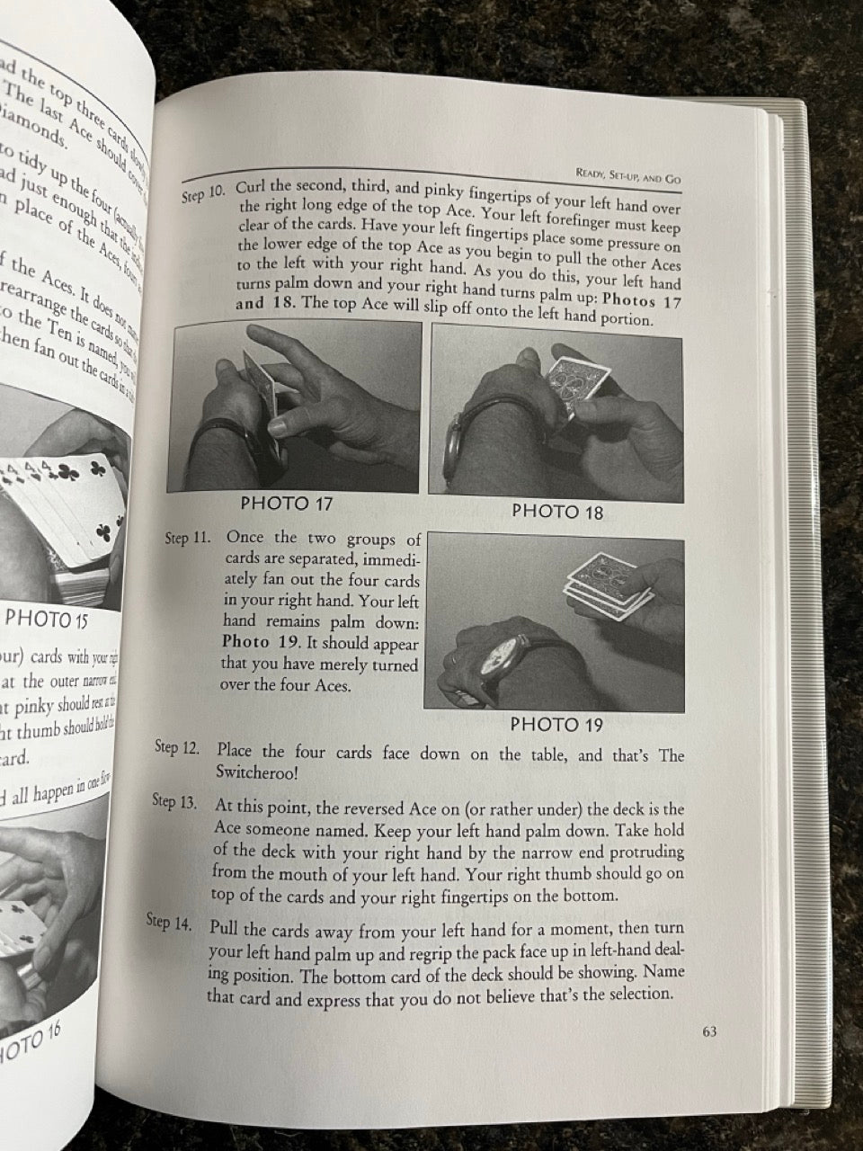- RIVETED ACES, in which a chosen card somehow appears between two “lucky” Aces that are riveted together!