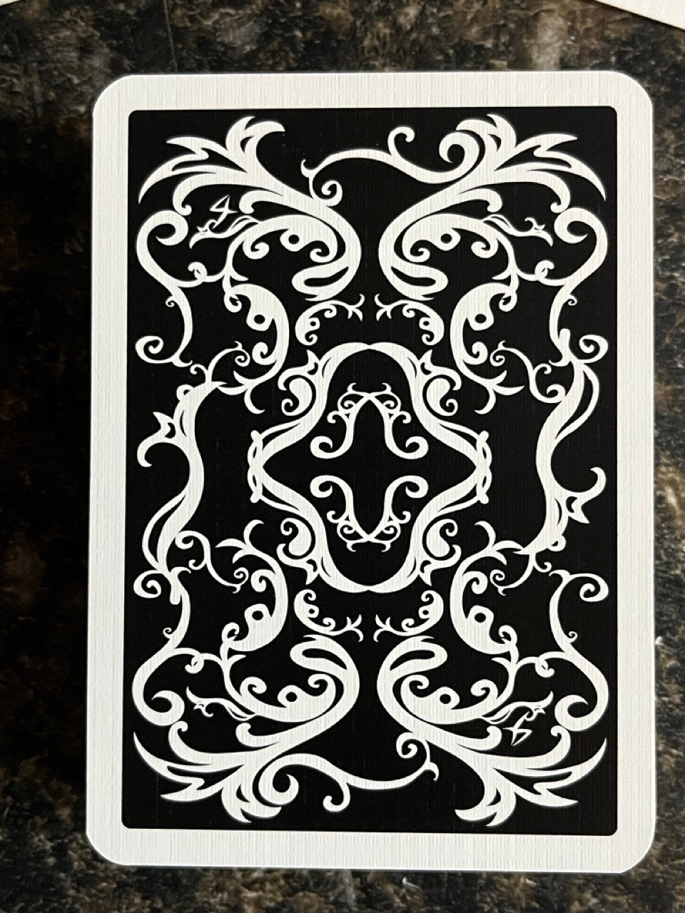 This is ESP Deck with Anglo backs in white on black design, printed by Offason of Sweden. The cards are the same high quality as Anglo Poker Ed09.