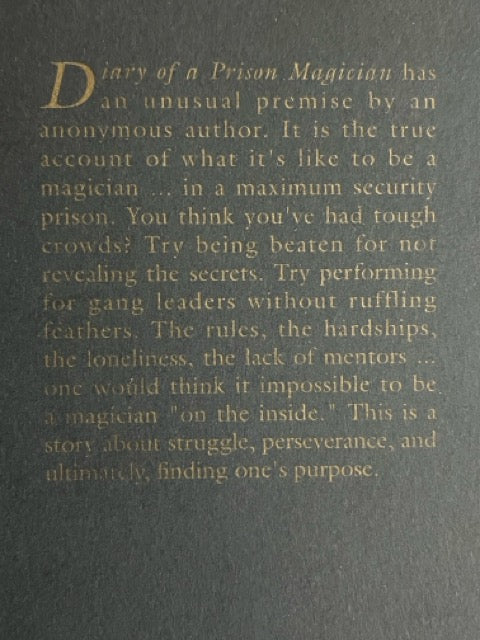 Diary of a Prison Magician is an autobiography written by a prison inmate-magician serving a life sentence. He speaks about doing magic "on the inside" and the unthinkable obstacles of performing magic in such a hostile environment. At turns fascinating and touching and funny, this volume speaks to the enduring power of magic not only for spectators, but also magicians.