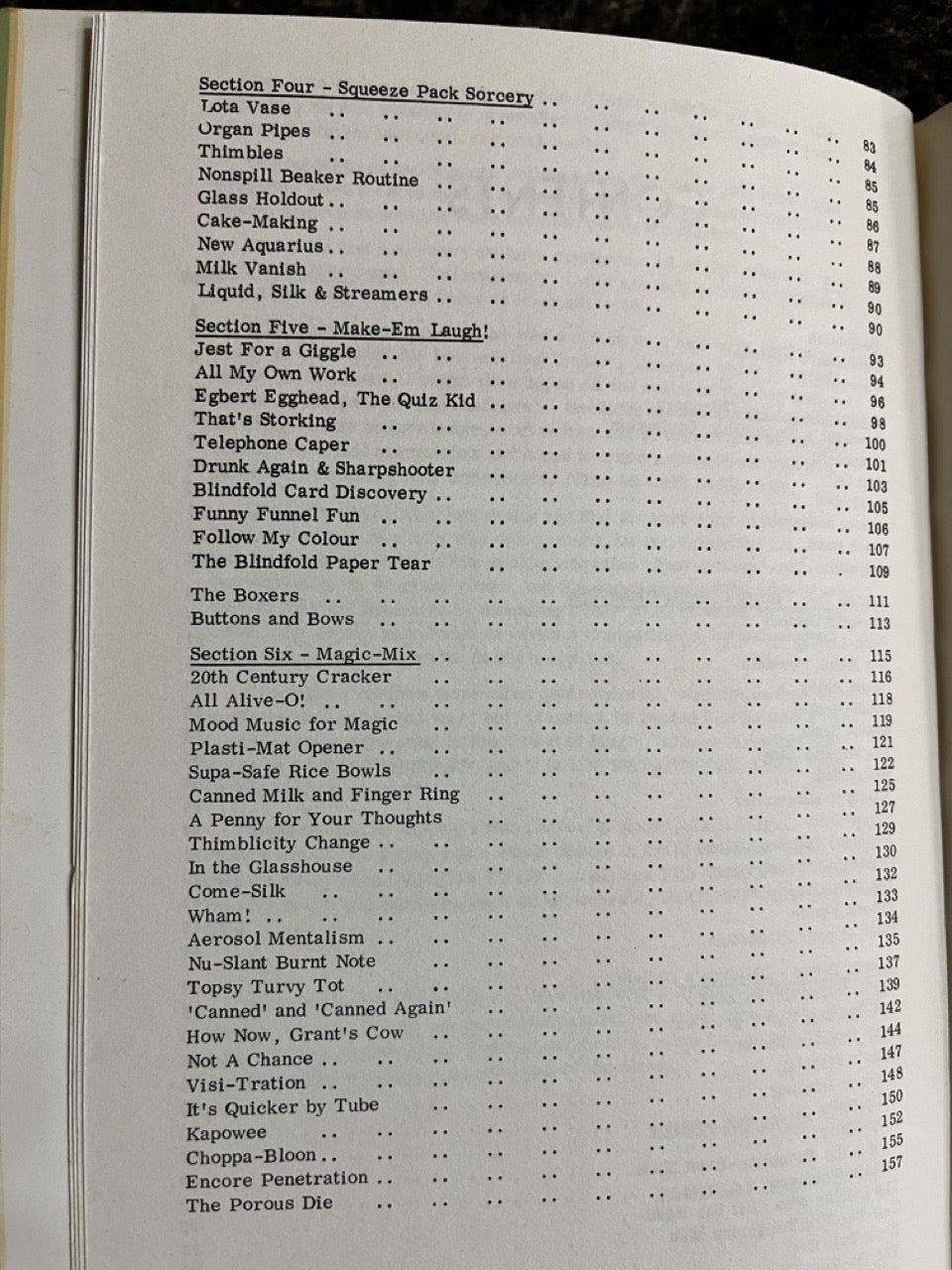 Contains everything from Cards, Mentalism, Coins, Stage magic and even a dose of routines for Kids. There is some great magic taught in this book including: Baker's Aerosol, Impossible Divination, Bewitched, Spoonerism, A Date to Remember, The Telephone Caper and much more.