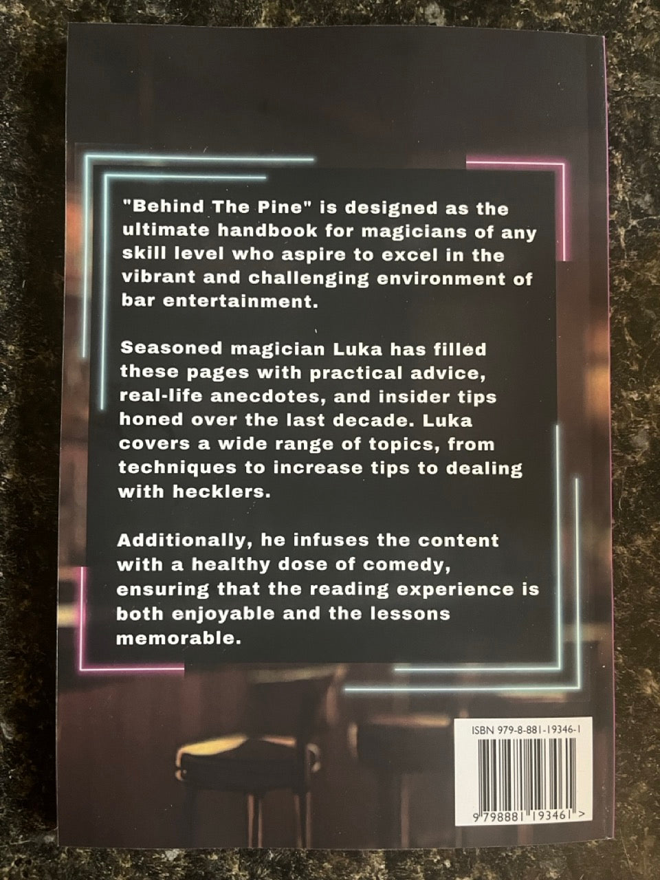 Introducing his first publication to fellow magicians, Luka unveils the insider secrets and strategies that professional and amateur magicians alike need to thrive in the world of bar magic. In a world where tricks are abundant, Behind the Pine offers something truly invaluable: knowledge. "Behind The Pine" isn't a compilation of tricks and gags; rather, it serves as your guide to succeeding not only in bar magic but also in utilizing the bar as a springboard to advance and expand your career as a magician. Additionally, he infuses the content with a healthy dose of comedy, ensuring that the reading experience is both enjoyable and the lessons memorable.