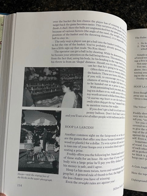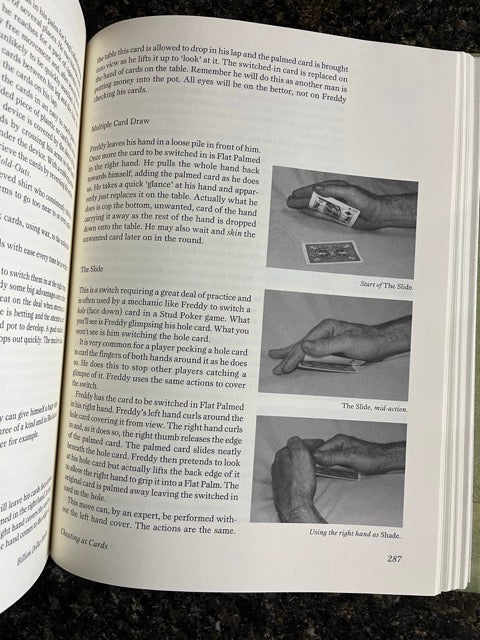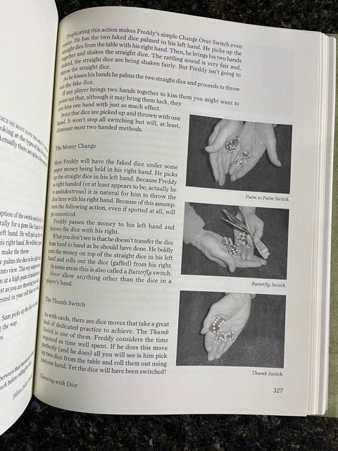 The book tackles an ambitious array of material divided into seven sections: Bar Bets; Some Bigger Hustles; Unfairgrounds and Crooked Carnivals; More Street Cons and Others; Cheating at Cards; Cheating with Dice; and Sneaky Ways to Beat the System, with hundreds of individual items all told. A major highlight of the book is the full-page pen-and-ink panels of "sequential art" drawn (and mostly written) by Alan Wassilak, that separate the content sections; done in a mock-lurid pulp comic style, these marvelous sheets are beautifully done and constitute my single favorite feature. (The dustjacket design is also clever.)
