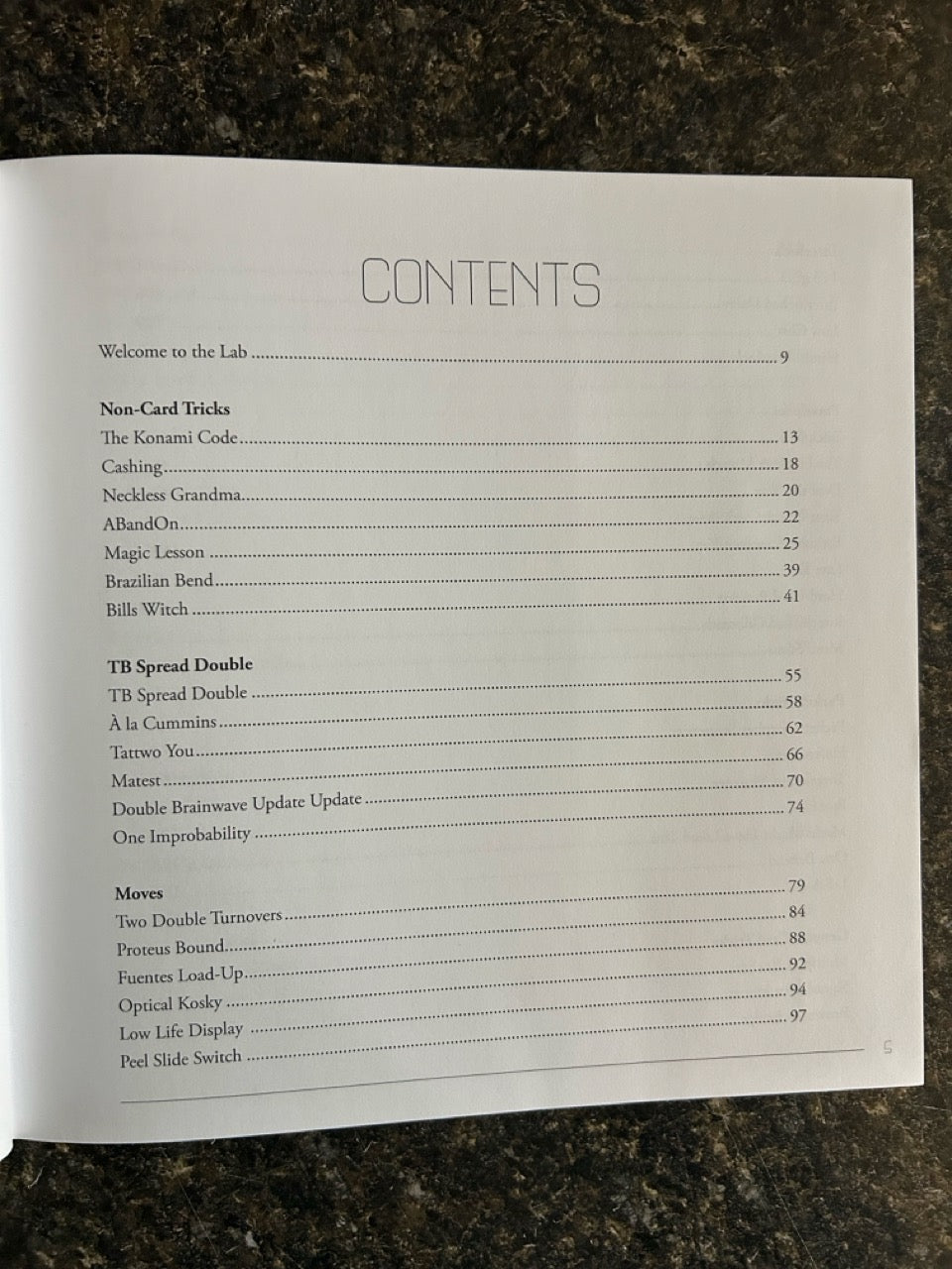 Sleight of hand fans are in for a treat as the book is full of new effects and techniques. In particular, pay attention to Tomas' work with the spread double lift: this refined technique has been used by card magic's elite for many years and it is finally published here, for the first time, along with five effects using it.