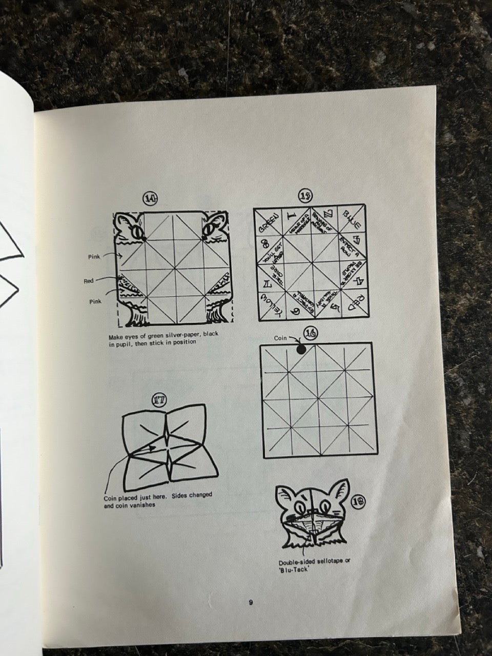 Includes magic with a "cootie catcher"
