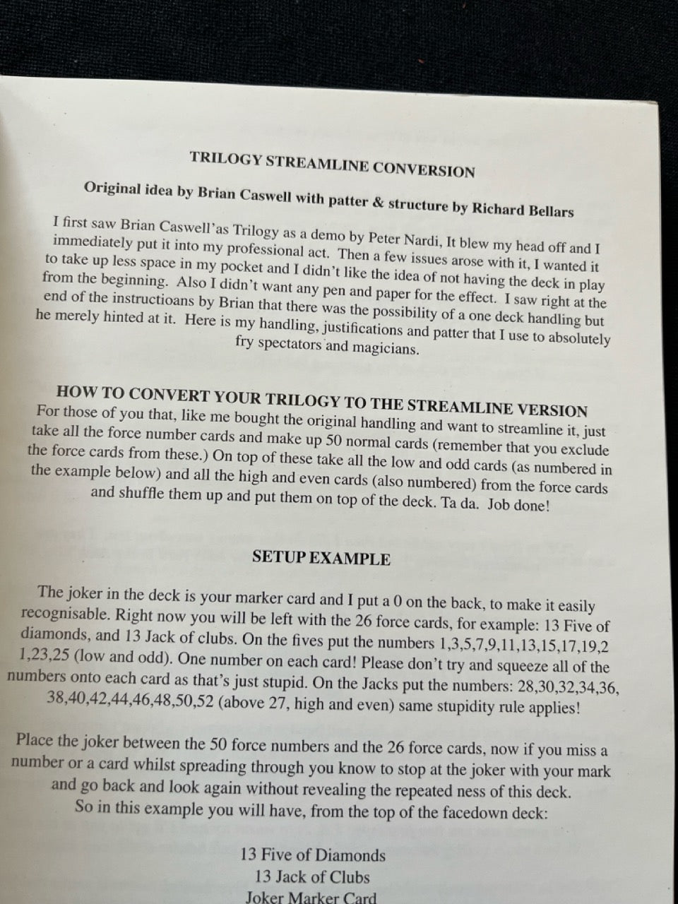 This is the instruction booklet for making Brian's Trilogy Deck work even better.