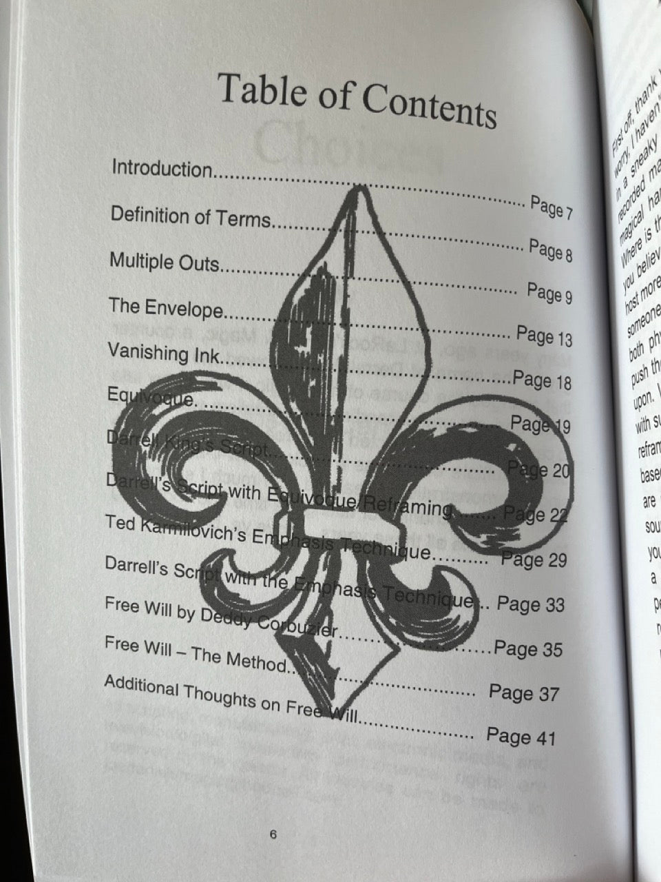 Choices is a collection of selection based mentalism. Outlined in detail are multiple selections, equivoque, emphasis techniques, and Free Will.