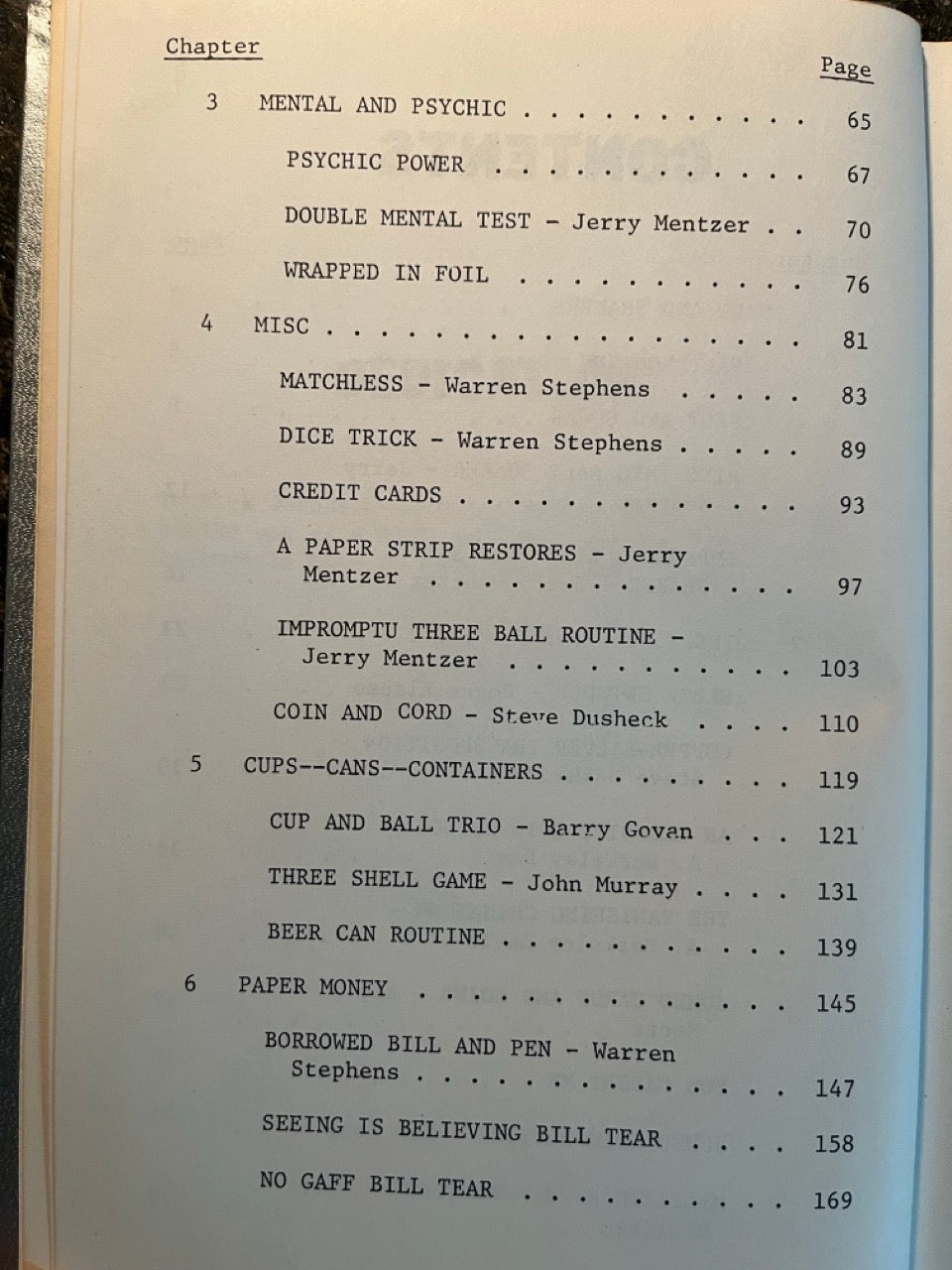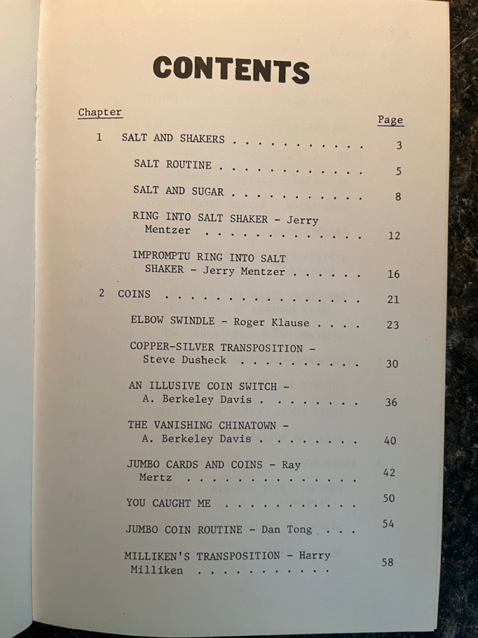 Close Up Cavalcade Finale contains a wide variety of tricks with ordinary looking objects such as paper money, matches, coins, finger rings, salt and saltshakers, dice, pens, etc. But no card tricks!! The working close up performer will find lots of things he can use. There is very little of the purely theoretical. Some of the tricks in Close Up Cavalcade Finale are totally impromptu. Others require a bit of preparation, but all routines use props that appear to be honest. If you are intrigued by close up magic without cards, you will want to own this collection of superb magic! Six big chapters with contributors the like of Duke Stem, Barry Govan, Roger Klause, Ray Mertz, John Murray, Steve Dusheck, Dan Tong, and more!! Over 25 complete routines!