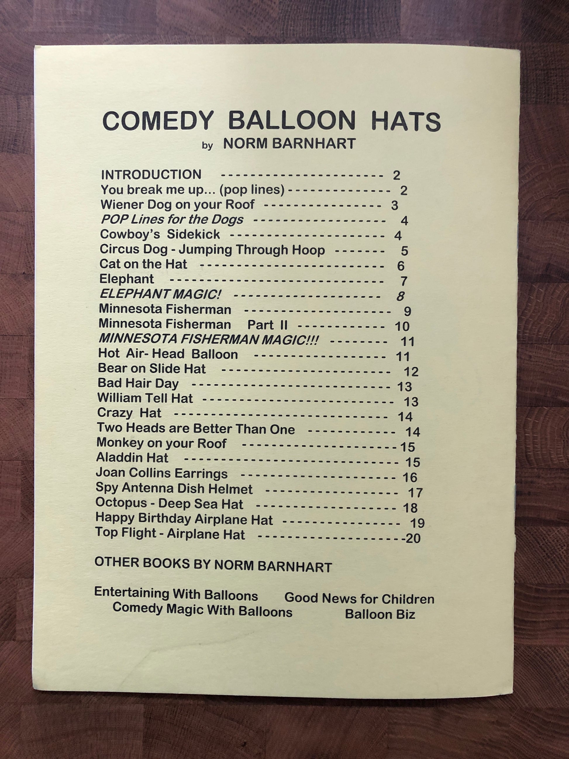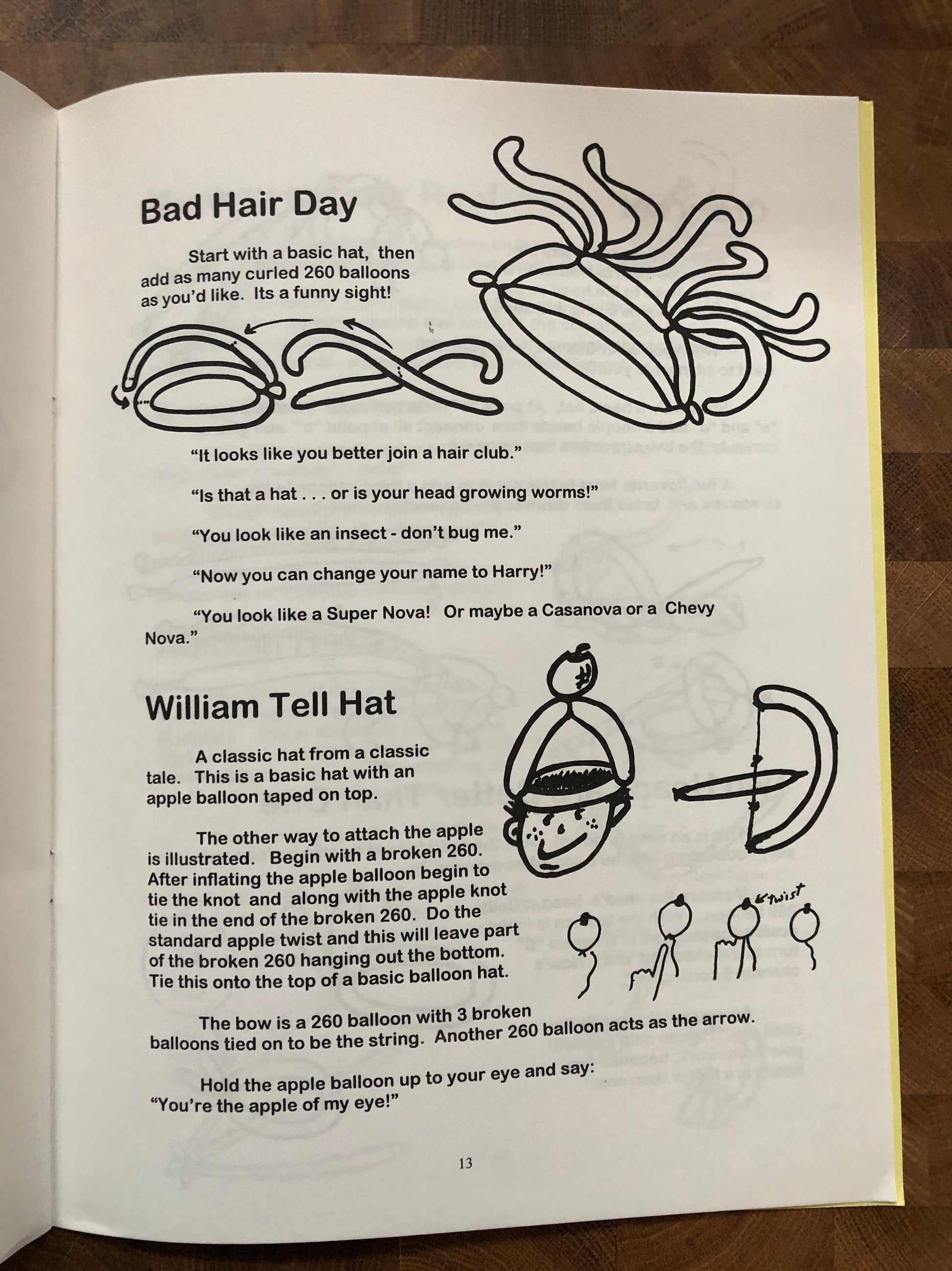 This book not only teaches you HOW to make flashy & fun balloon hats, but teaches you how to do some comedy lines and magical bits of business while you are making the hats. Keeps you from becoming merely a "balloon factory", but instead, you can be a balloon entertainer.