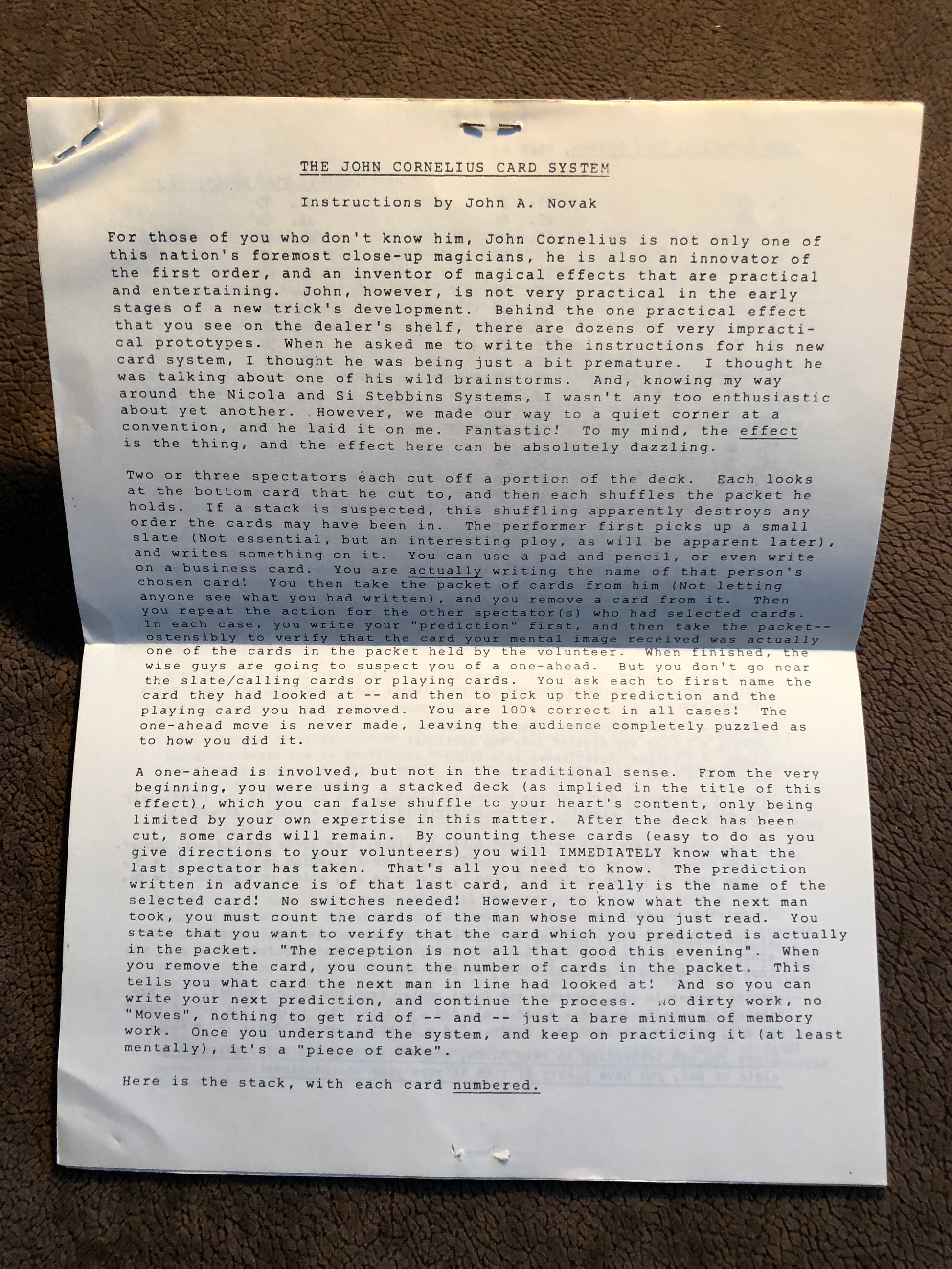 Written by John Novak, covering John Cornelius' variation of a stacked deck.