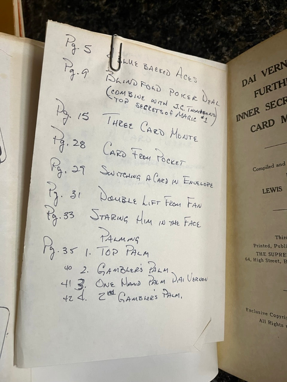 3) Further Inner Secrets of Card Magic. USED, RED hardcover with black/white dust jacket, 72 pages, Supreme Magic