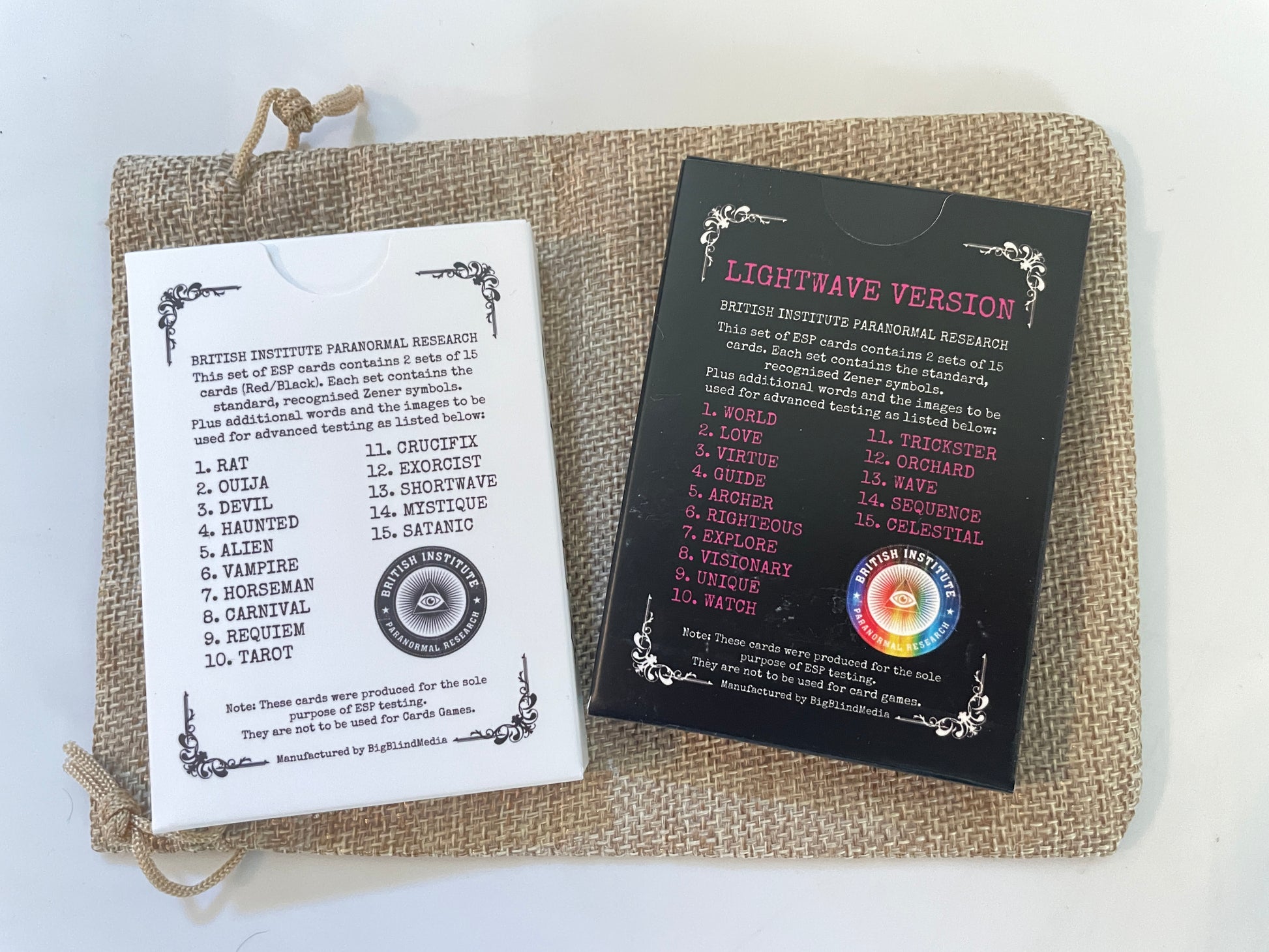 THE BUNDLE - Two beautiful, complimentary, custom printed ESP Decks on robust resilient stock packed in a useful carry bag. And hidden away in plain site on the back of each card is a brilliantly camouflaged marking system.