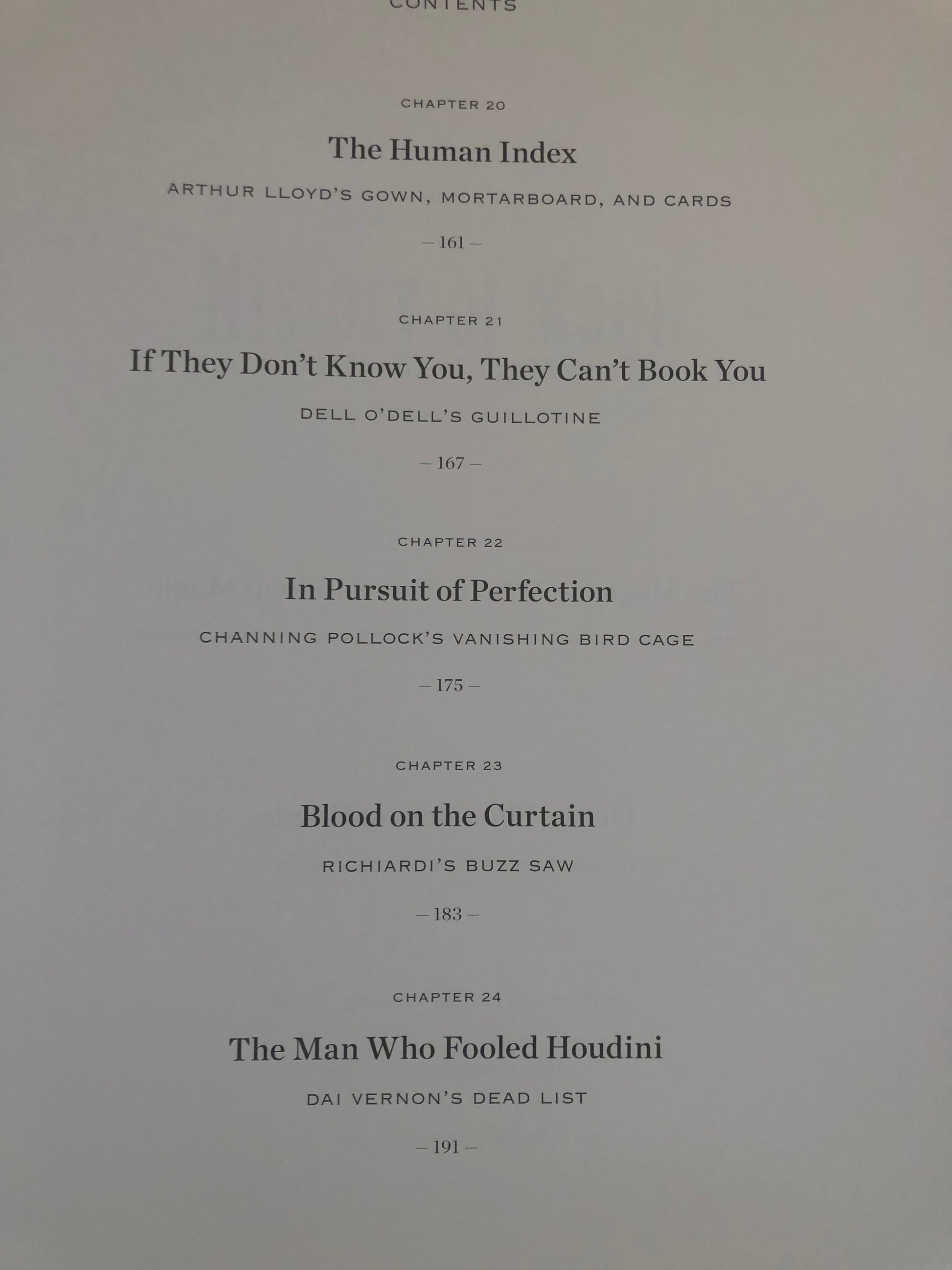 The incredible stories are complemented by over 100 never-before-seen photographs of artifacts from Copperfield's exclusive Museum of Magic, including a 16th-century manual on sleight of hand, Houdini's straightjackets, handcuffs, and water torture chamber, Dante's famous sawing-in-half apparatus, Alexander's high-tech turban that allowed him to read people's minds, and even some coins that may have magically passed through the hands of Abraham Lincoln.