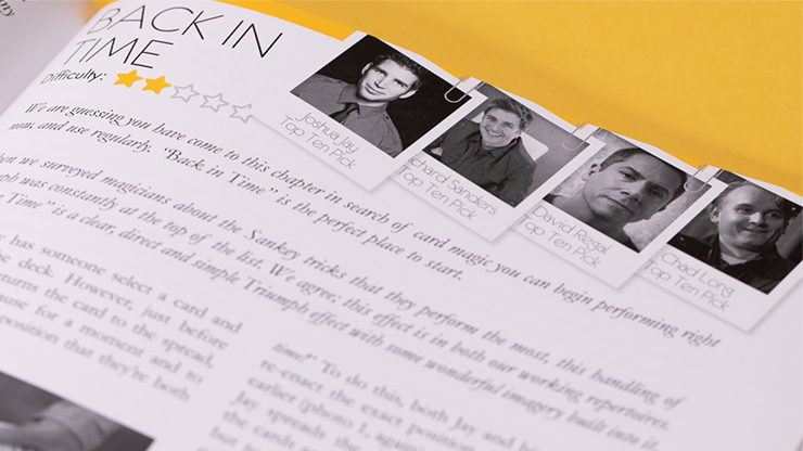 With so much great material available, it might feel daunting trying to choose where to start. This is exactly why Vanishing Inc. enlisted the help of some of the best magicians in the world to identify the best-of-the-best material in these books. Innovative and renowned creators like David Regal, Rune Klan, Richard Sanders, and others, all compiled their Top 10 Jay Sankey tricks. Those lists, including the pages in which the tricks can be learned, are included throughout the book. Each routine also has a Top 10 badge that is very easy to spot when flipping through the book.