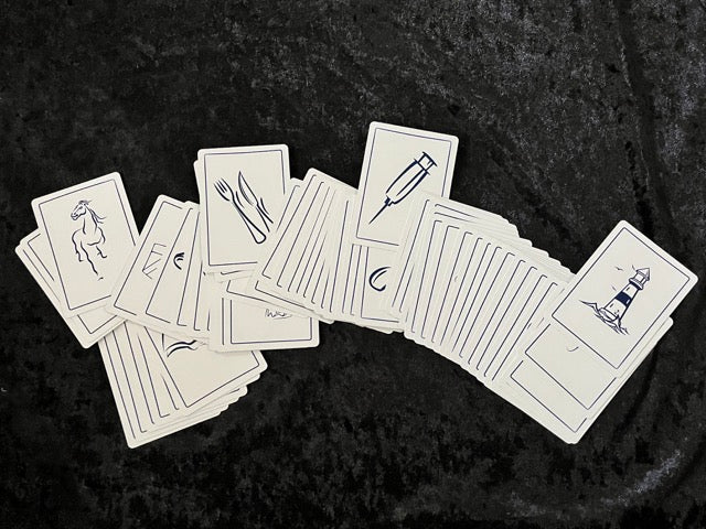 You receive a picture card deck with 54 different designs, with hidden markings.
