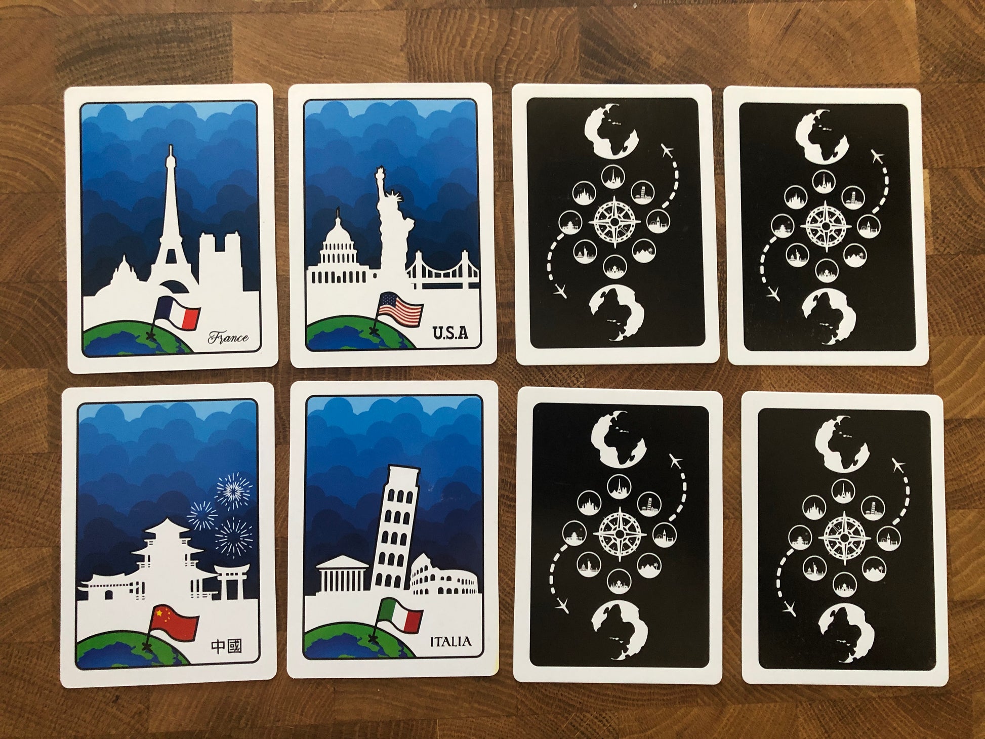 NEW, 8 world-wide glossy finish location cards, online instructions.