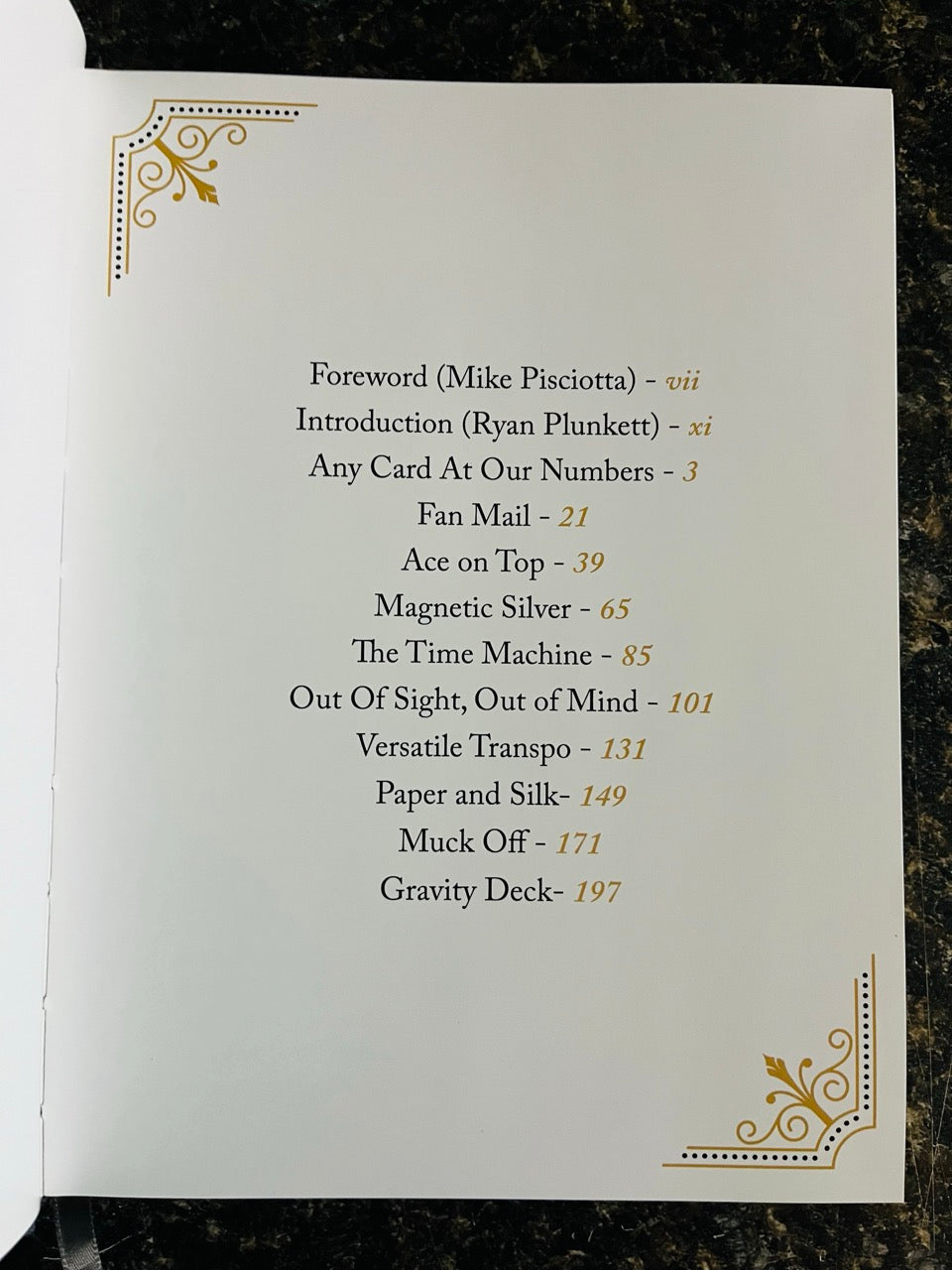 Ace on Top - Ryan openly admits this is bound to be the most popular and performed piece from the book. It is a true worker constructed with an elegant array of sleights and counts that are fairly easy to perform. Despite openly changing the order of an assortment of cards, the cards always impossibly find their way back to their original positions.