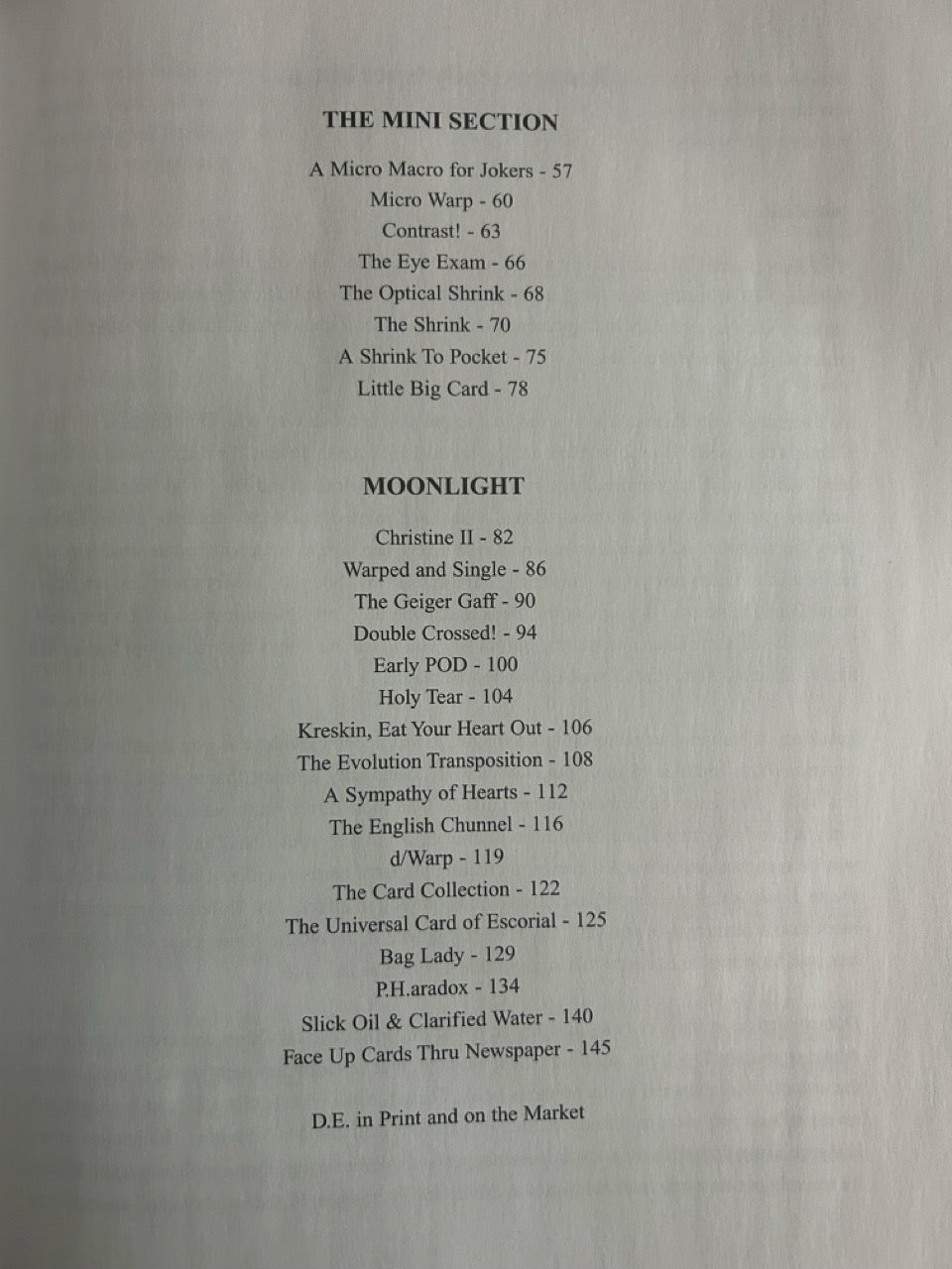 Inspired by Brother John Hamman and Ed Marlo, Don England is truly a modern day Hofzinser! For not since Hofzinser has there been such a prolific creator of ingenious gaffs and routines with prepared cards as Don England. A strong claim to be sure! But his book Gaffed to the Hilt provided strong support for such a claim. And now this book, Don England’s Paradox, will surely cement what many in the “underground” have known for years.