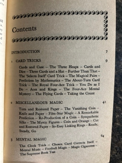 "No intricate sleight of hand required. No exotic equipment is necessary. All you need are some cards, pencils, handkerchiefs, and envelopes, and with a little practice, SHAZAM! you'll be doing mind-boggling tricks with the fair of a Houdini."