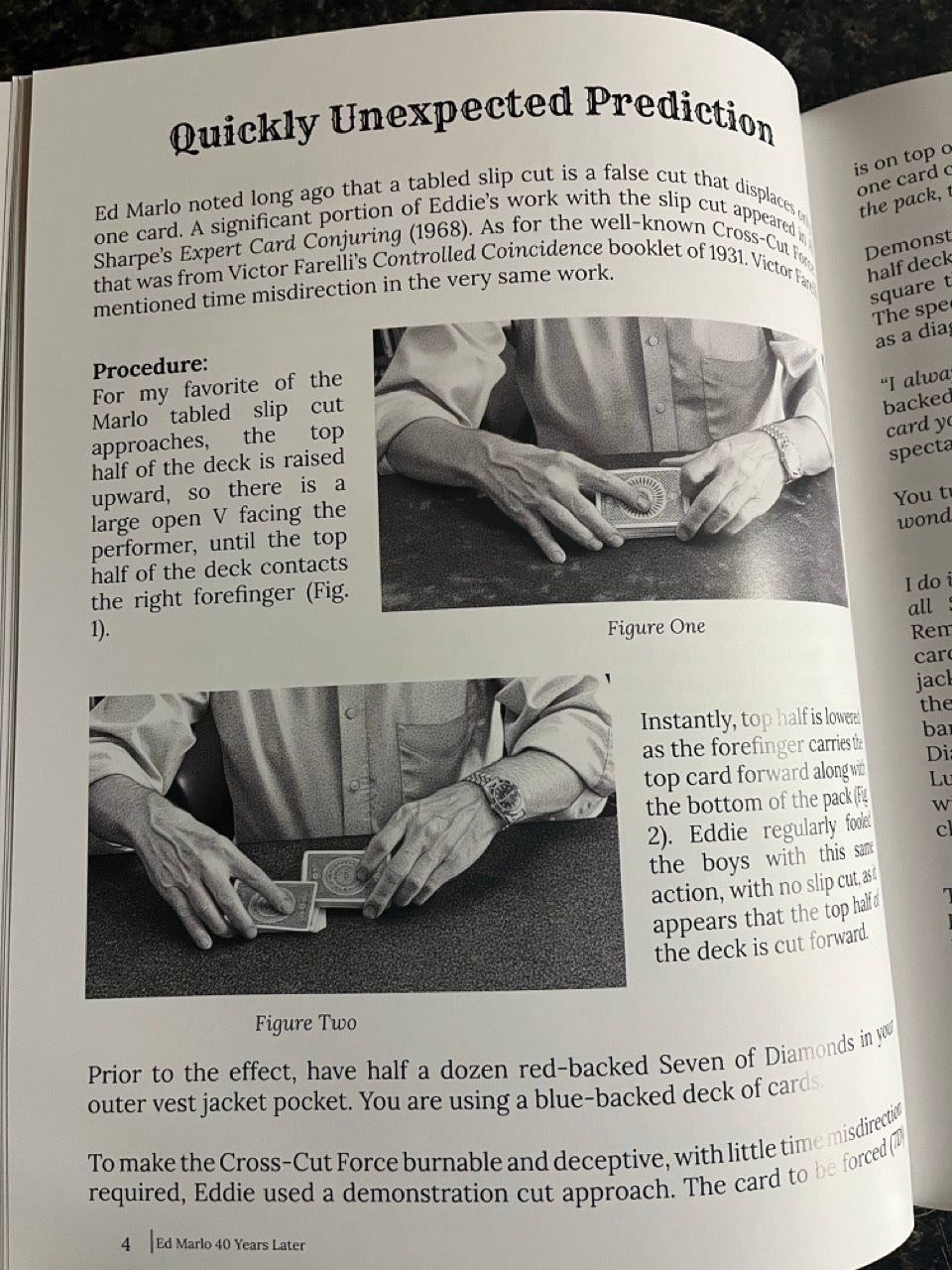 This is first NEW hardbound Ed Marlo book in 42 years, and only the second hardbound Marlo book ever produced. Written completely from scratch by two people that intimately knew and studied under Ed Marlo-- for over fifteen years. You'll find thirty-four complete routines, over thirty-five sleights, moves, and subtleties all well-explained with some seventy-eight illustrations.