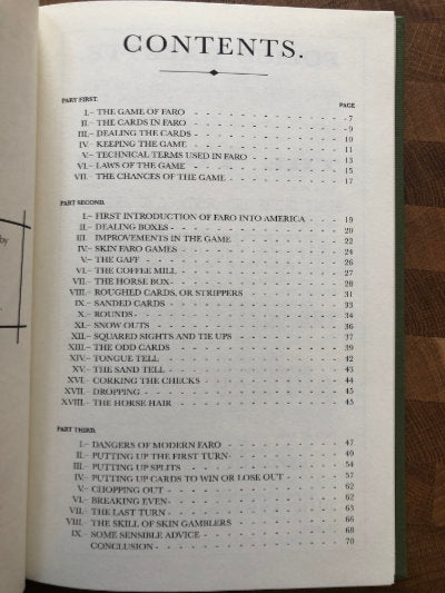 Twenty years before Erdnase, Faro Exposed explained riffle stacking and gaffed dealing boxes, along with countless other subterfuges and sleights used to "get the money" in a game that was, until the rise of poker, America's national past time.