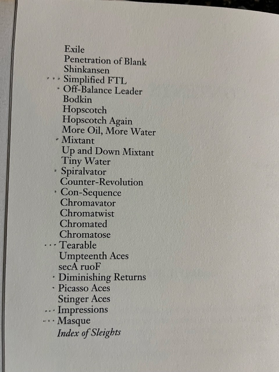 All of the tricks are packet tricks, but most tend to have a feel of something a little bigger. Most of them using standard packet trick methodology such as easy switches, false counts and false displays, which are all within the reach of any close-up magician.