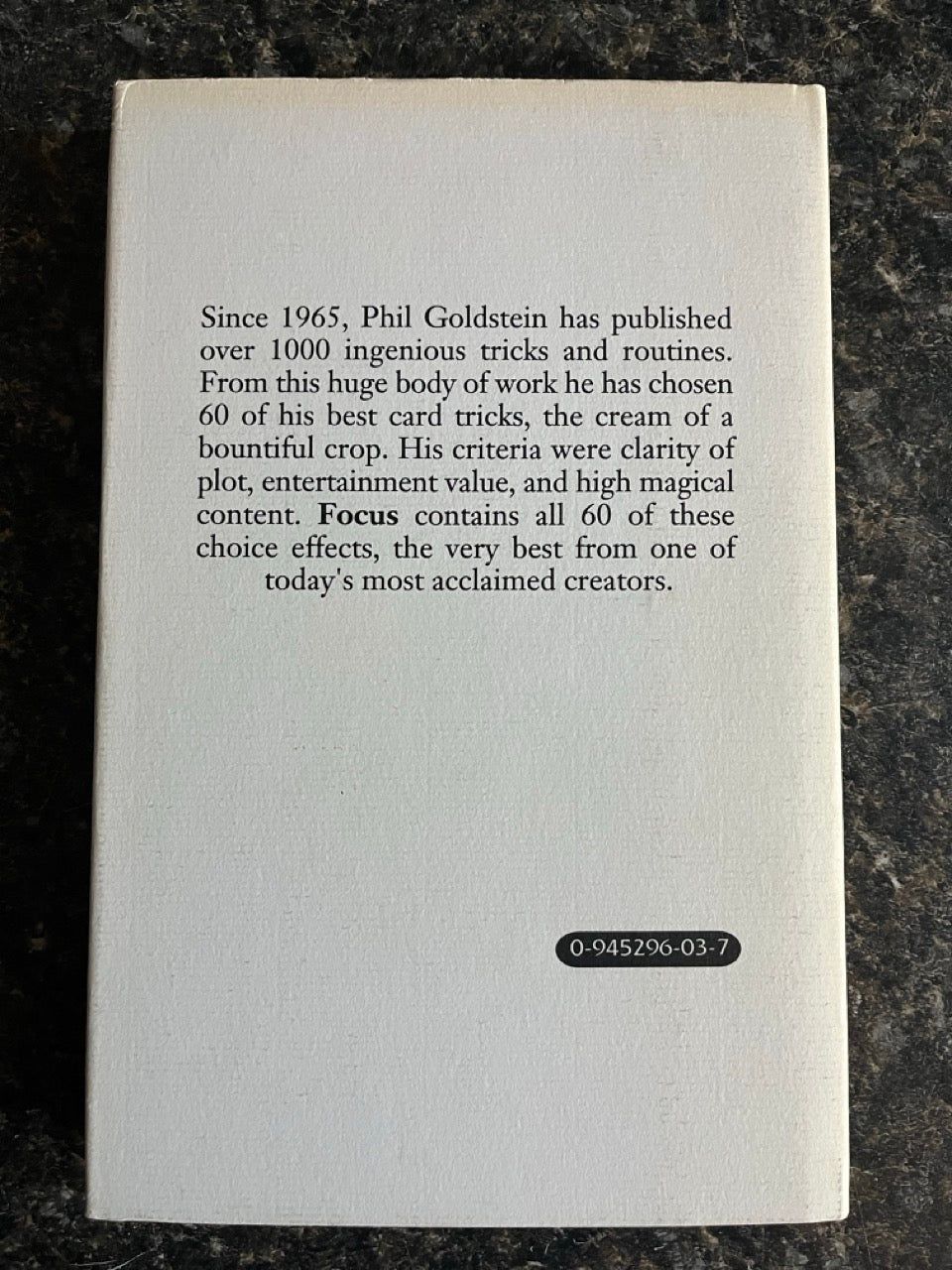 Phil (also known as Max Maven) has published over 1,000 tricks in the past 45 years. Focus consists of just 60 of those tricks; but they're his favorites and most of them are very good. Phil's criteria for selecting these tricks were clarity of plot, entertainment value, and high magical content.