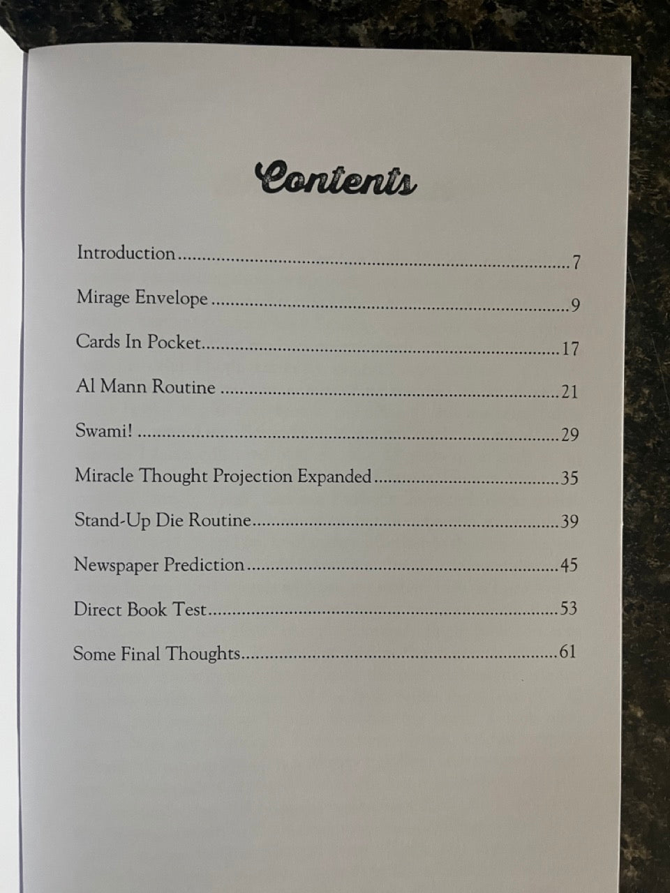 The Swami - For the first time in one place, Richard tells you exactly the type of swami he uses, how to prepare it and how to fit it. This chapter is worth the cost of the whole book if you are a working mentalist!