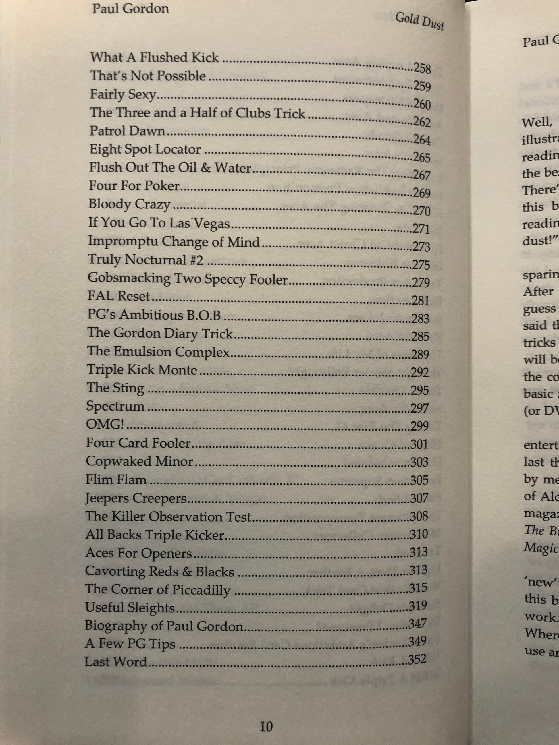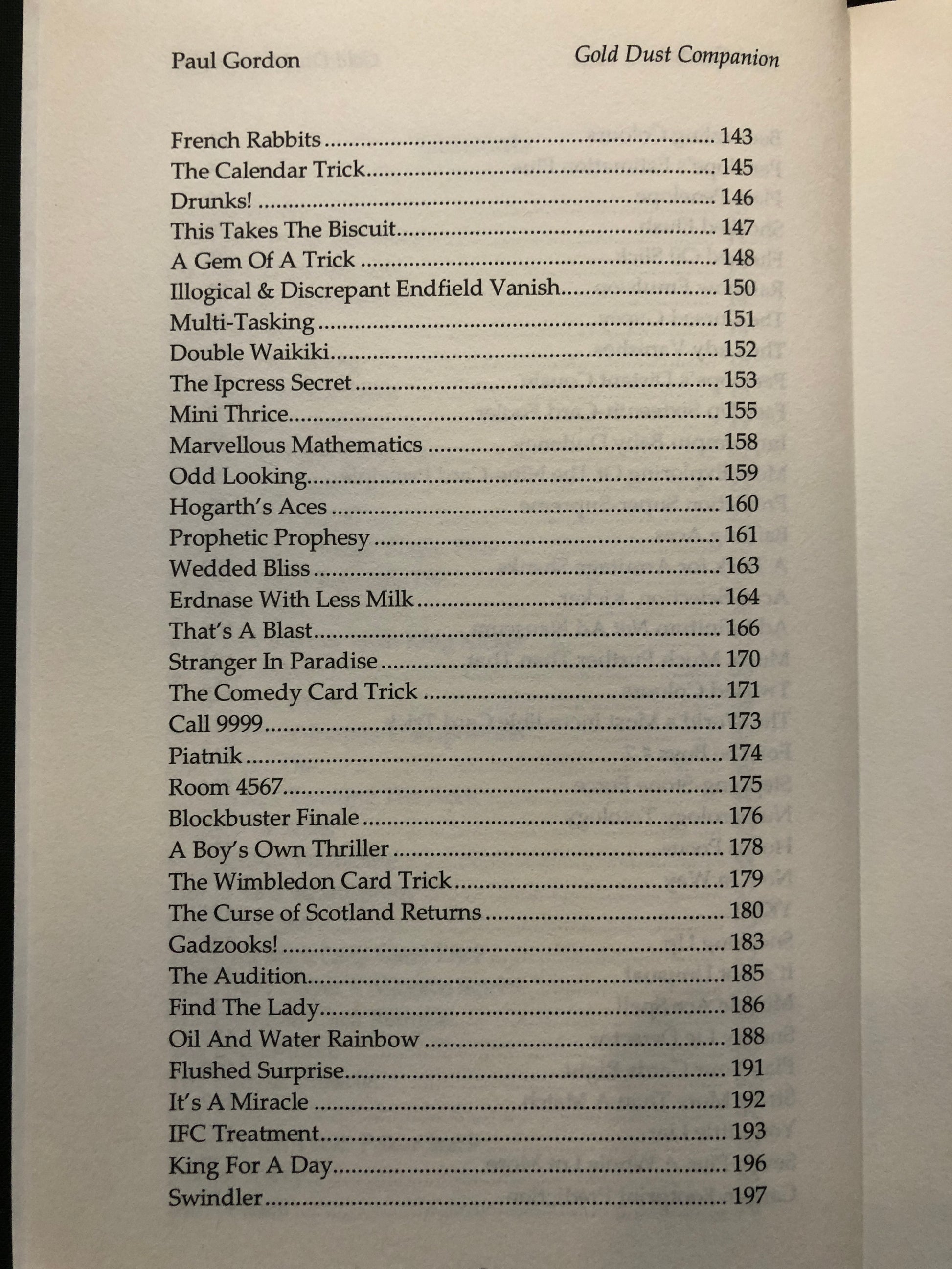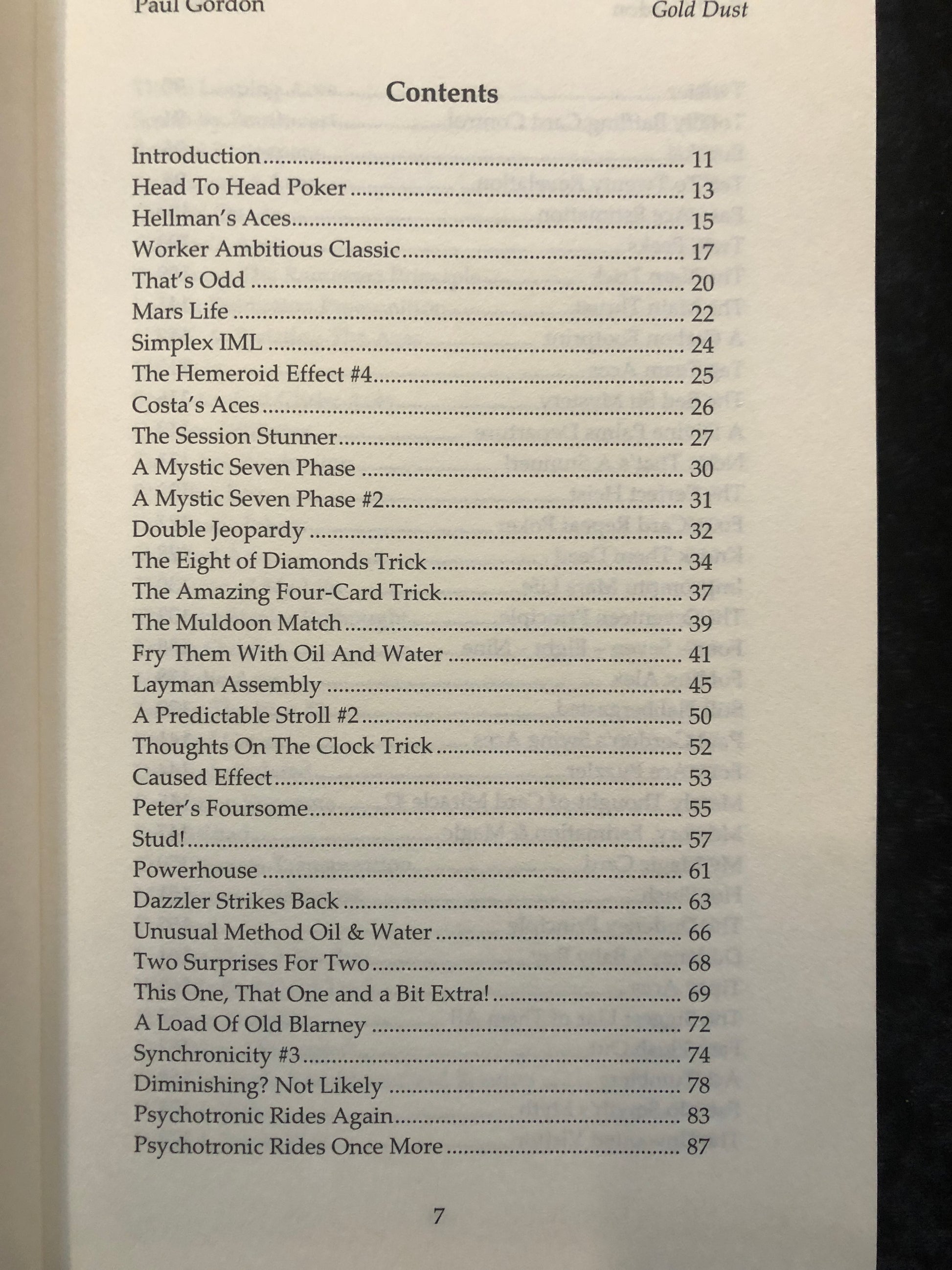 Gold Dust was four years in the making and was released in 2012. It's Paul Gordon's very best writing, very best production and very best magic. It's a big book! Each and every trick really is a startler! This is the very best of Paul's thirty-five years of creating; and all under one great-looking, foil-embossed hardback cover! There are tricks for every skill level; beginners through to advanced. Just watch a few video demos on the "videos" page. Gold Dust contains many new gems, too. And all the older material has been updated, re-written, changed and improved. Paul's writing is very easy to understand, too. And, most tricks are described in just one or two pages! 150 killer tricks - 352 jam-packed pages!