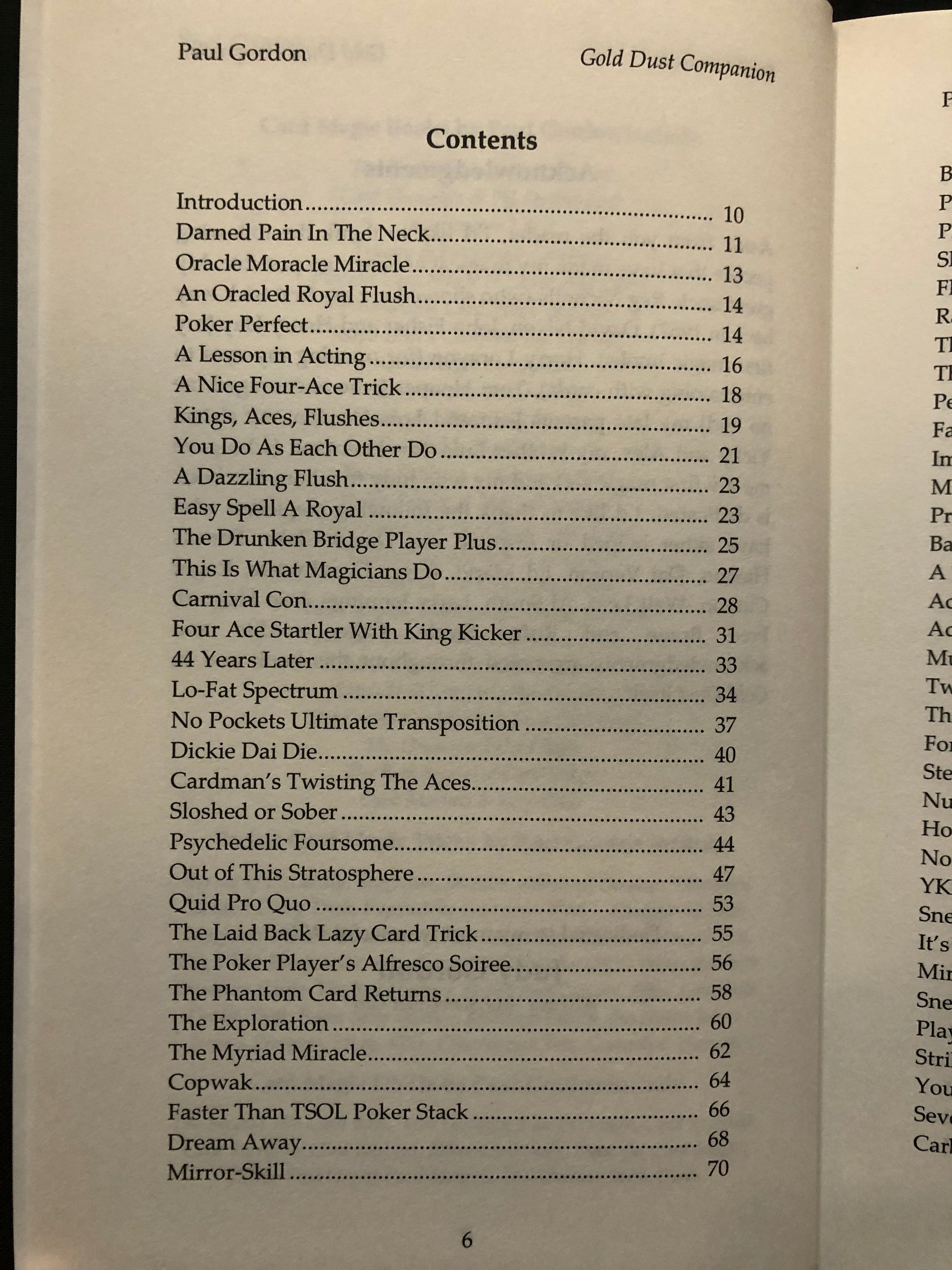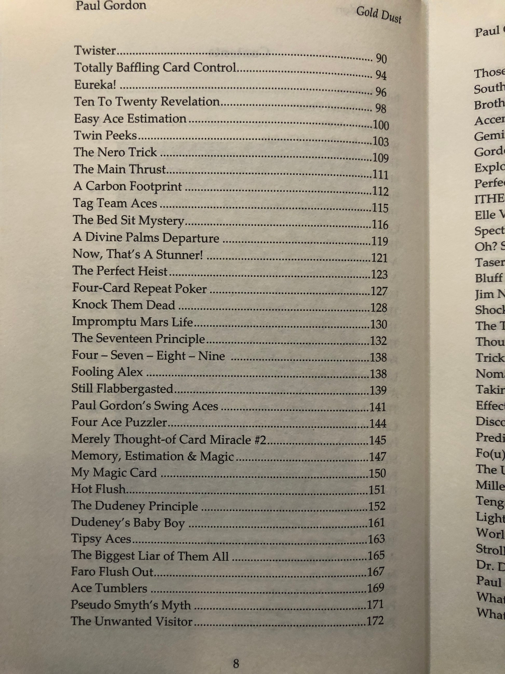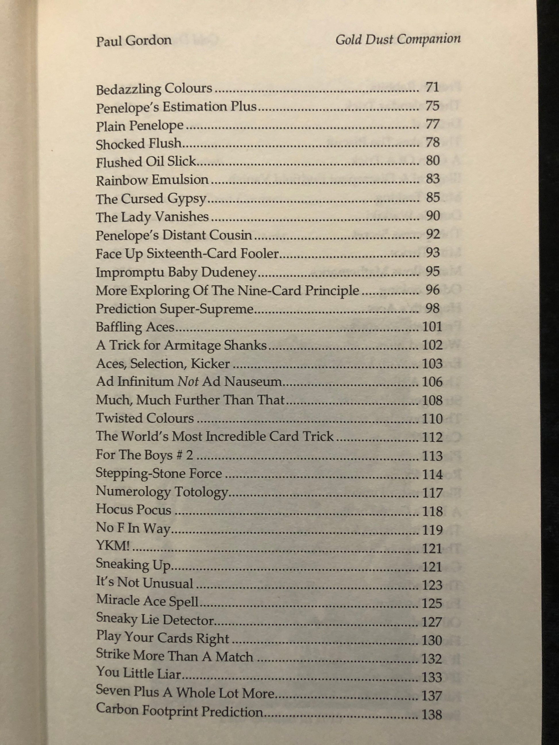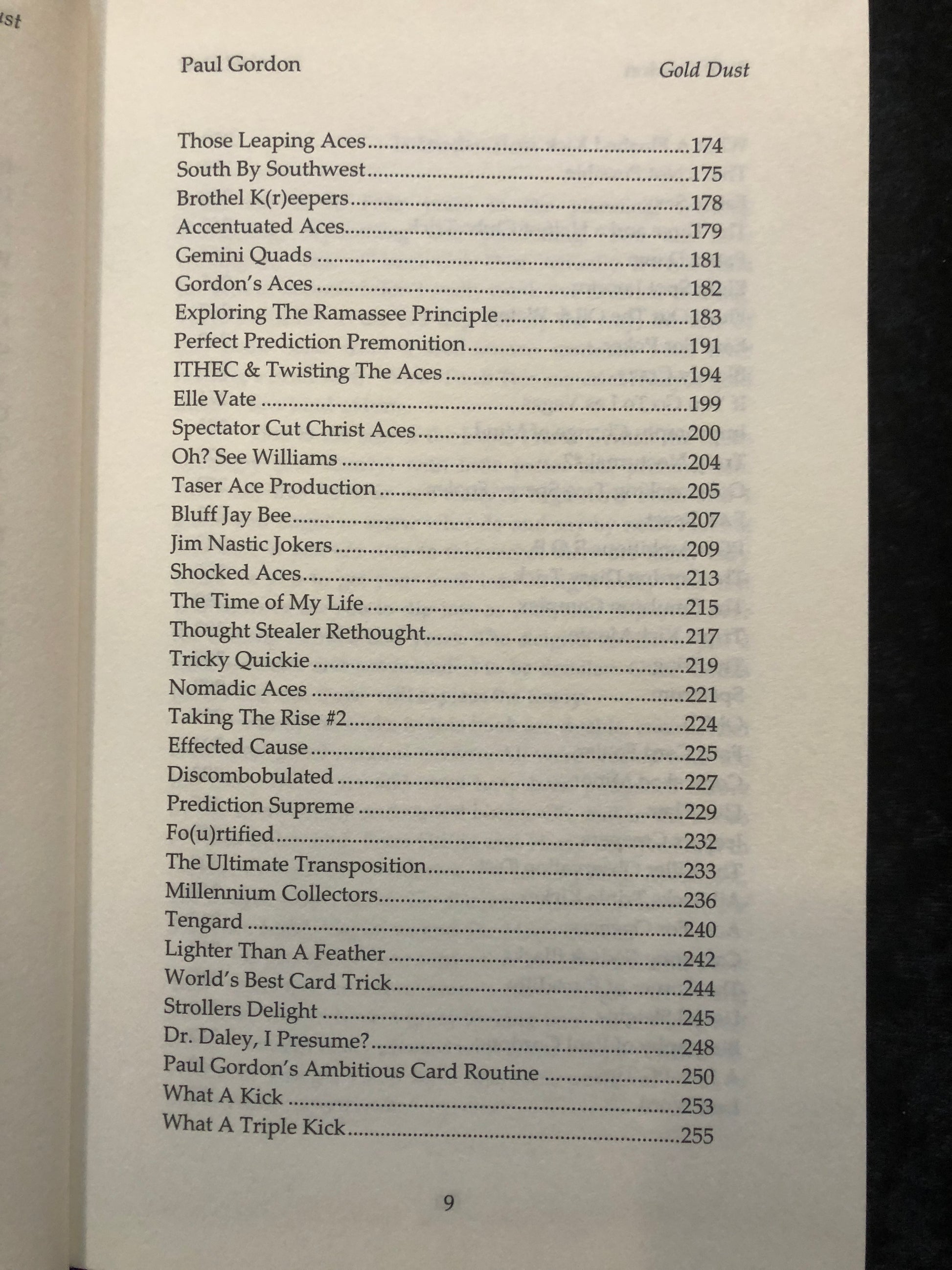 Gold Dust was four years in the making and was released in 2012. It's Paul Gordon's very best writing, very best production and very best magic. It's a big book! Each and every trick really is a startler! This is the very best of Paul's thirty-five years of creating; and all under one great-looking, foil-embossed hardback cover! There are tricks for every skill level; beginners through to advanced. Just watch a few video demos on the "videos" page. Gold Dust contains many new gems, too. And all the older material has been updated, re-written, changed and improved. Paul's writing is very easy to understand, too. And, most tricks are described in just one or two pages! 150 killer tricks - 352 jam-packed pages!