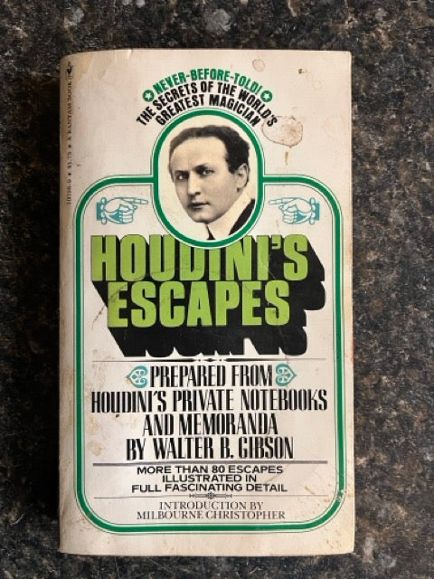 "Prepared from Houdini's private Notebooks and Memoranda by Walter Gibson. More than 80 escapes illustrated in full fascinating detail."
