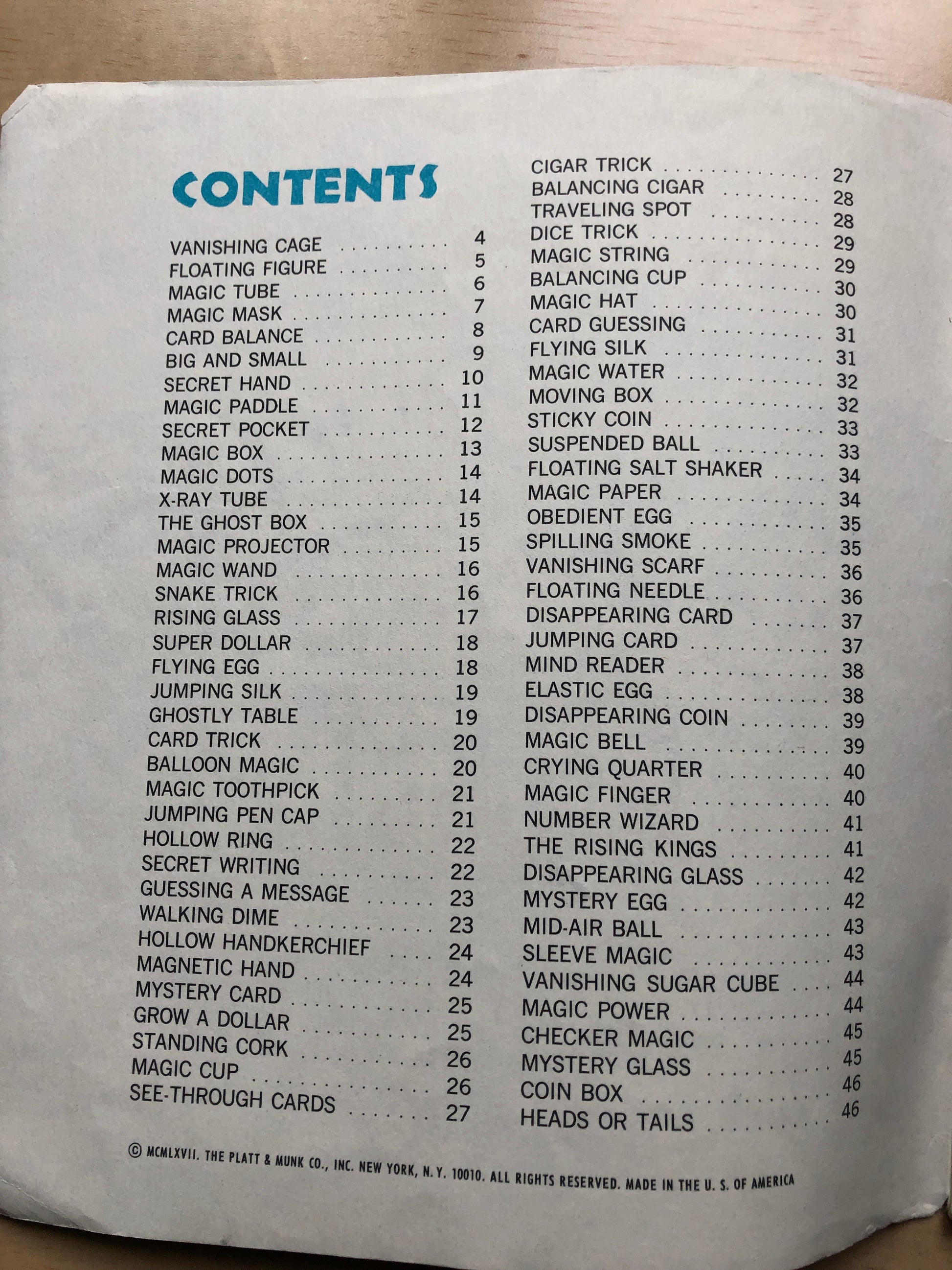 46 pages of general magic that anyone can learn to do. See photos for full contents.