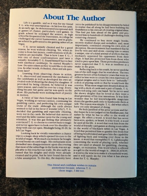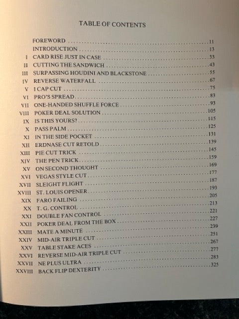 This is a HUGE book. It. not only teaches tricks and flourishes, but the author also tried to teach how to create your own sleights and magic so that you will never again be dependent on others for your card work. It is taught throughout the book.
