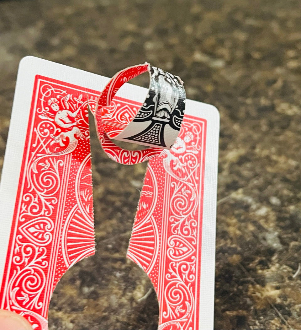 You are provided with a full deck of Bicycle back cards, with each card micro perforated, ready to begin folding this impossible object. See the photos about what the final product can be, as well as how every card in this deck is already micro perforated to fold.