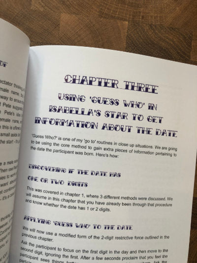 The performer explains that by imagining the date of birth objectively as though it belonged to somebody else makes it possible to divine. To prove his/ her point the performer looks at the participant and starts by revealing their star sign.