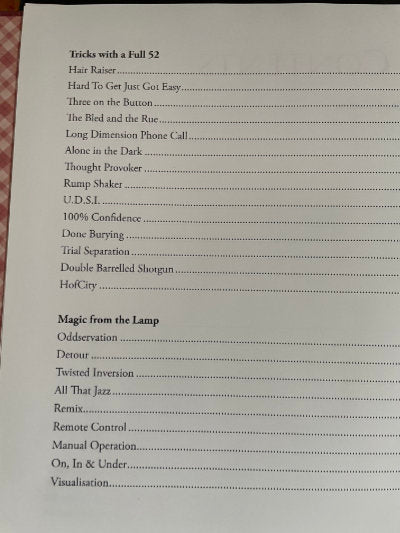 With fifty-two items, just under 300 large pages, you are invited into a one-time tour of Jack Parker's life in magic. The attractive two-color printed pages in 52 Memories sit between thick hard backed covers, and contain all the elegance to sit alongside your most prized books on magic.