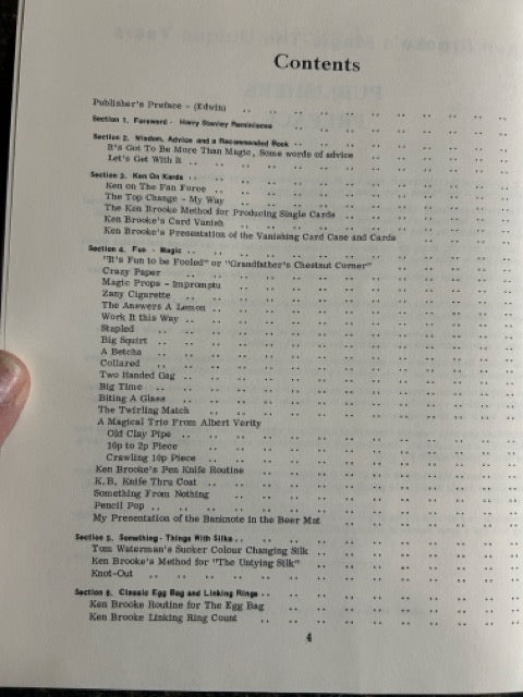 The Story of Ken Brooke’s rise to popularity told by Harry Stanley. Plus over 200 pages of magic tricks with instructions, diagrams and pictures that were performed by Ken Brooke.