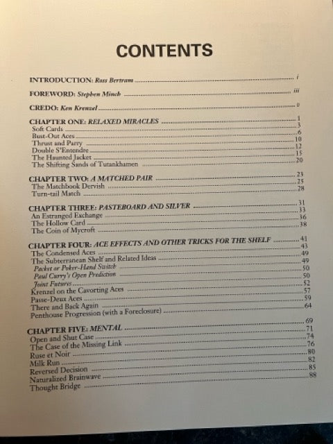 Ken Krenzel had long enjoyed a reputation for being on the cutting edge of innovative close-up magic, magic that is direct, visual, baffling- magic that genuine impact on audiences. That reputation os fully realized in this book.