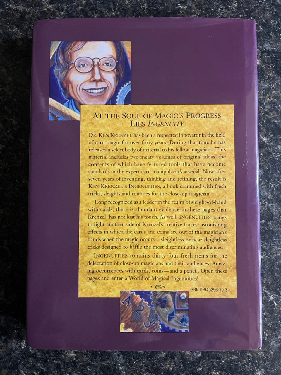 Ken Krenzel, long a leading exponent of innovative sleight-of-hand, reveals his most recent collection of visual magic and baffling happenings with cards, coins and a pencil! Ingenuities brings abundant evidence as well of a "kinder, gentler" Krenzel. Featured are many effects that take place with the cards out of the magician's hands; sleightless or near sleightless tricks guaranteed to perplex and astonish the most discriminating audience.