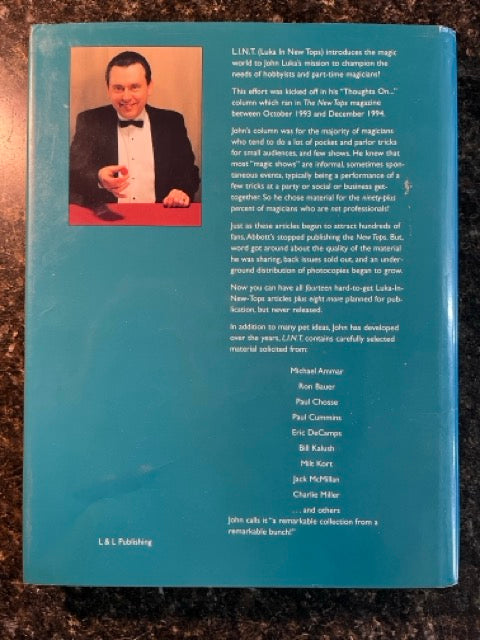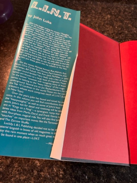 Some of the great magic in L.I.N.T. includes Chromo Balls, Brother Hamman's Homing Card, The Magic Coin, Ron Bauer's Lie Detector, Second Sight, Devilish Trickery, Key to the Draw, Milt Kort's Okito Less Coin Box, Paul Chosses handling of the Diagonal Palm Shift. Also included are variations and simplified handlings for the Zarrow Shuffle and the Turnover Pass. John Luka also solicited and includes several choice items from Paul Cummins, Ron Aldrich, John Morgan, Bill Kalush, Michael Ammar, Chris Carter, and Eric DeCamps.