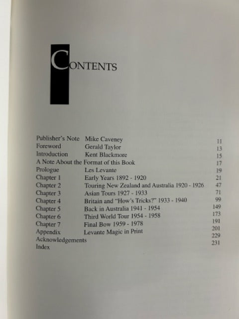 This is the seventh installment in our award-winning series of Magical Pro-Files. The format for this biography of the great Australian illusionist Les Levante, is unlike any other book in our acclaimed series.
