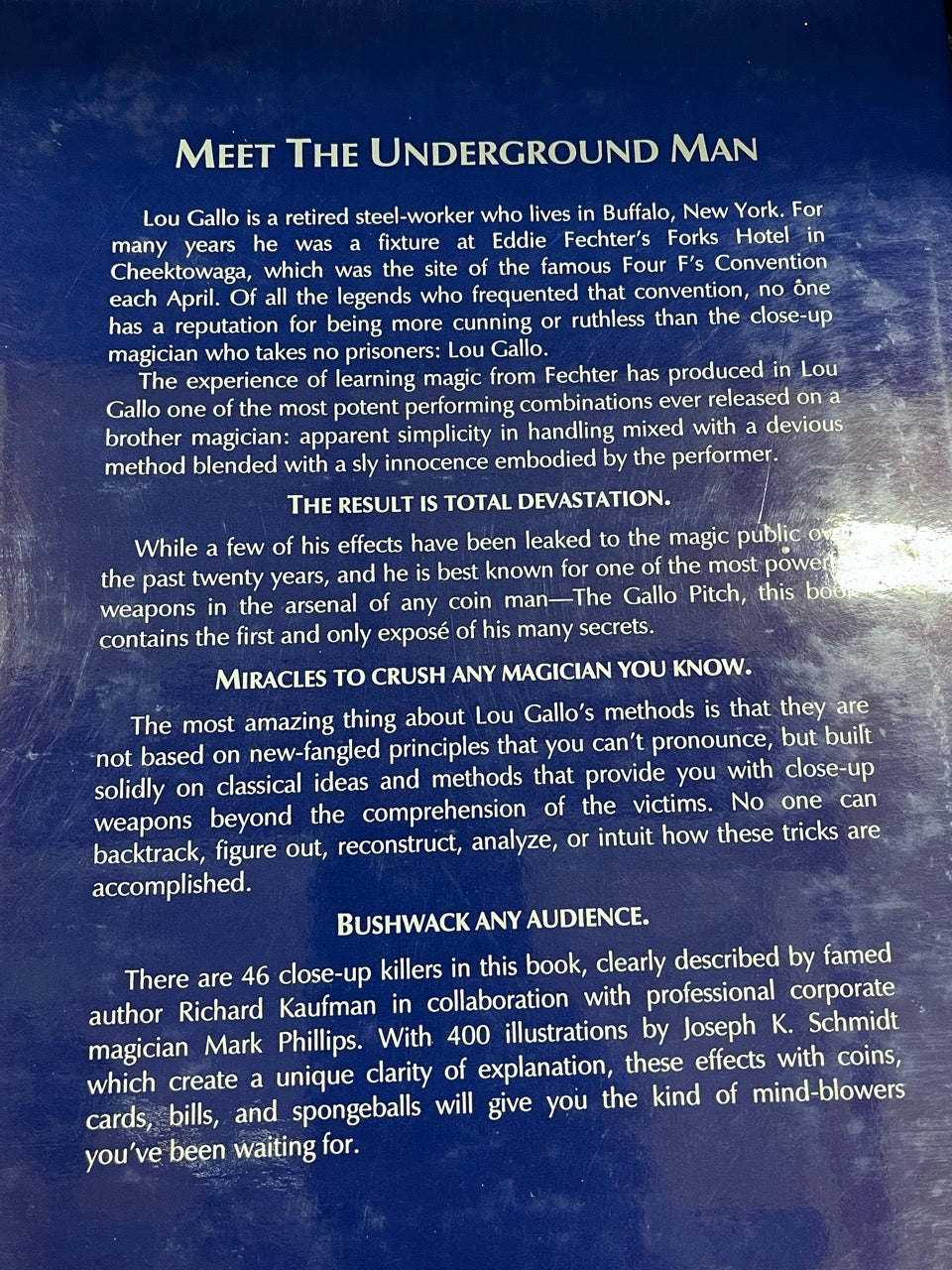 Gallo was an expert at leading magicians down the garden path and turning the hose on them. If you are looking for principles that will allow you to fry your fellow magi, this book is an incredible resource.