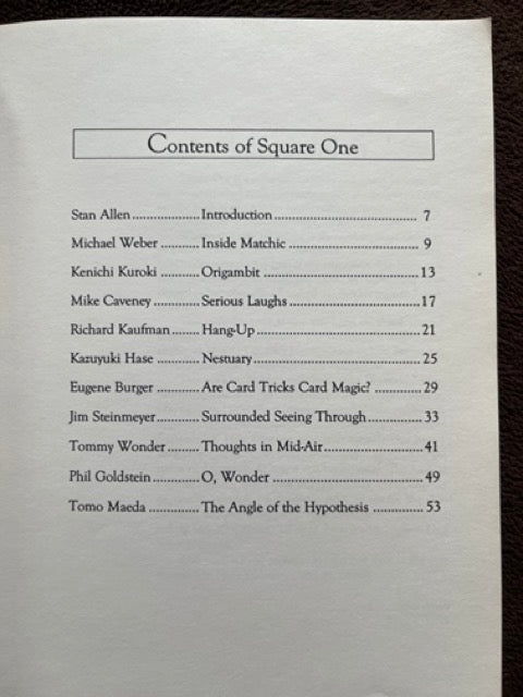 2. Square One is a collection of tricks and essays by some of the most respected names in magic today. The purpose of this unique book is to act as an overture for their other publications in MAGIC - An Independent Magazine for Magicians. Stan Allen 1991.