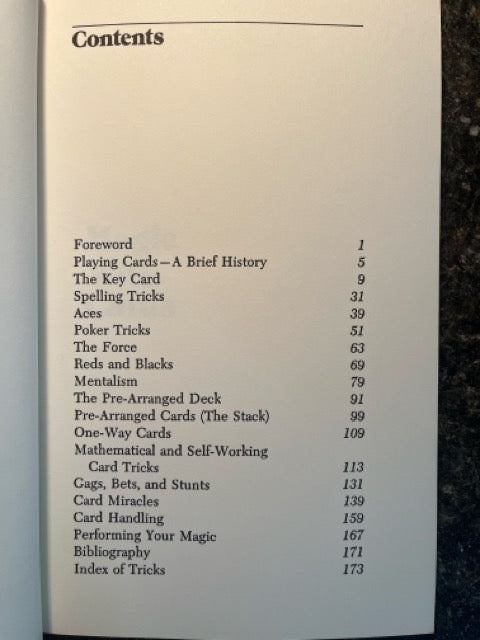 NOTE from Don: This is THE book I suggest to anyone wanting to start learning good card tricks. The chapter on KEY CARD is a great start into card magic.