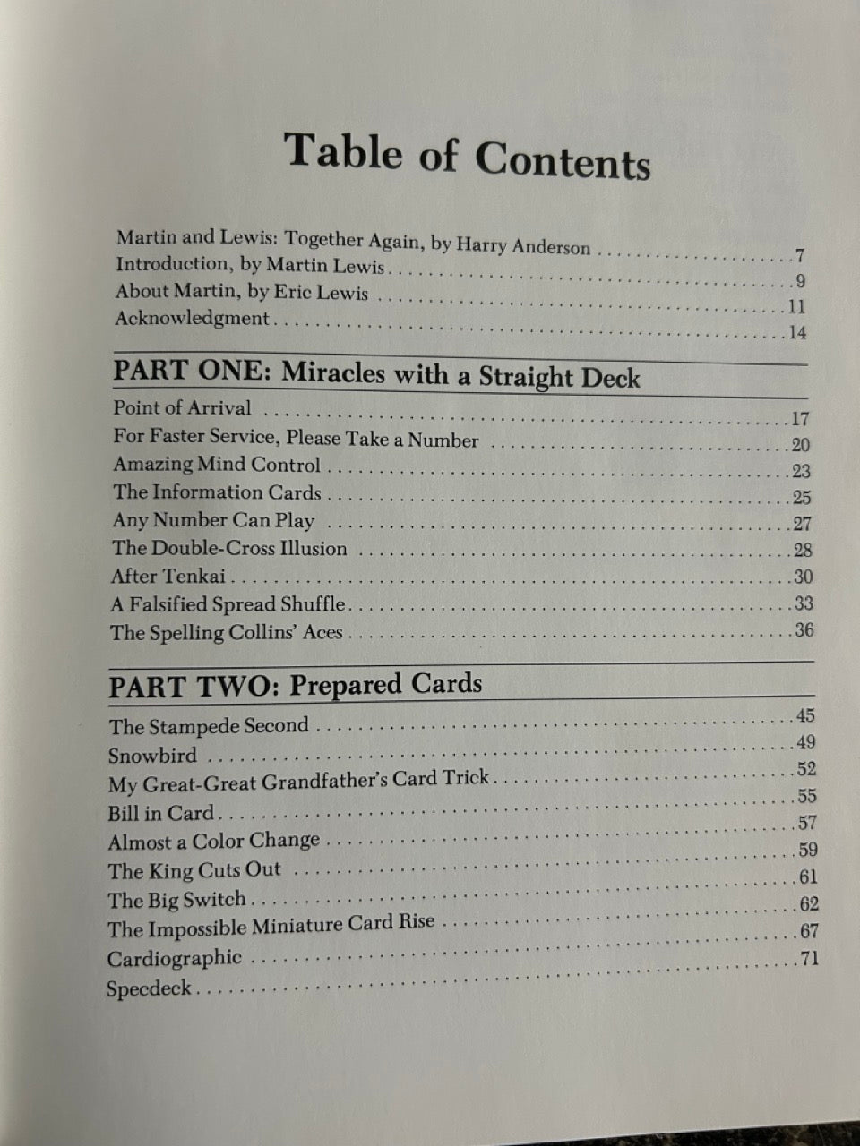 Martin Lewis started out as the resident magician at San Francisco’s famous Magic Cellar and then graduated to revue shows in Las Vegas and Reno and finally cruise ships. The many close-up, platform and stage effects that were honed to perfection in these demanding venues have been collected together in Martin’s Miracles. Succeeding in all of these areas requires an extraordinary amount of commercial material. His jumbo monte routine (Sidewalk Shuffle, Page 95) is another modern classic. Today, hundreds of full-time pros around the world are performing this knock-your-socks-off material.