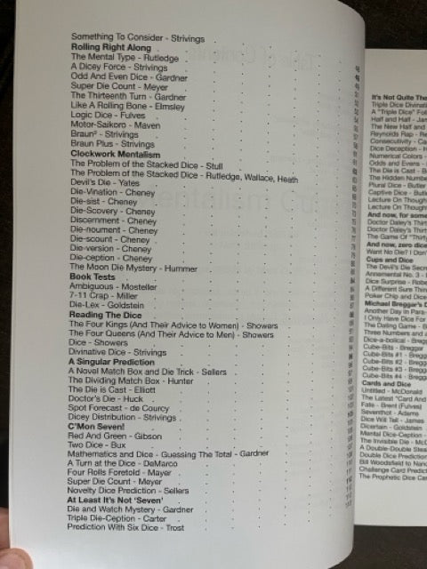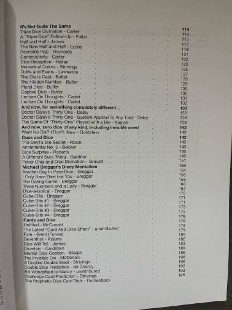 And we won't even talk about the possibilities of using dice in conjunction with a deck of playing cards. And yes, there is an entire chapter of killer mentalism using a deck of cards (14 items) and a couple of dice. But this barely represents the tip of the iceberg in that department.