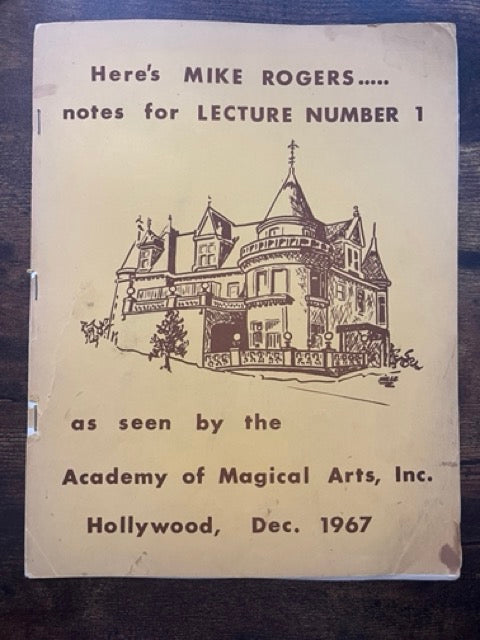 "Here's MIKE ROGERS...notes for Lecture Number 1...as seen by the Academy of Magical Arts, In. Hollywood, Dec. 1967"